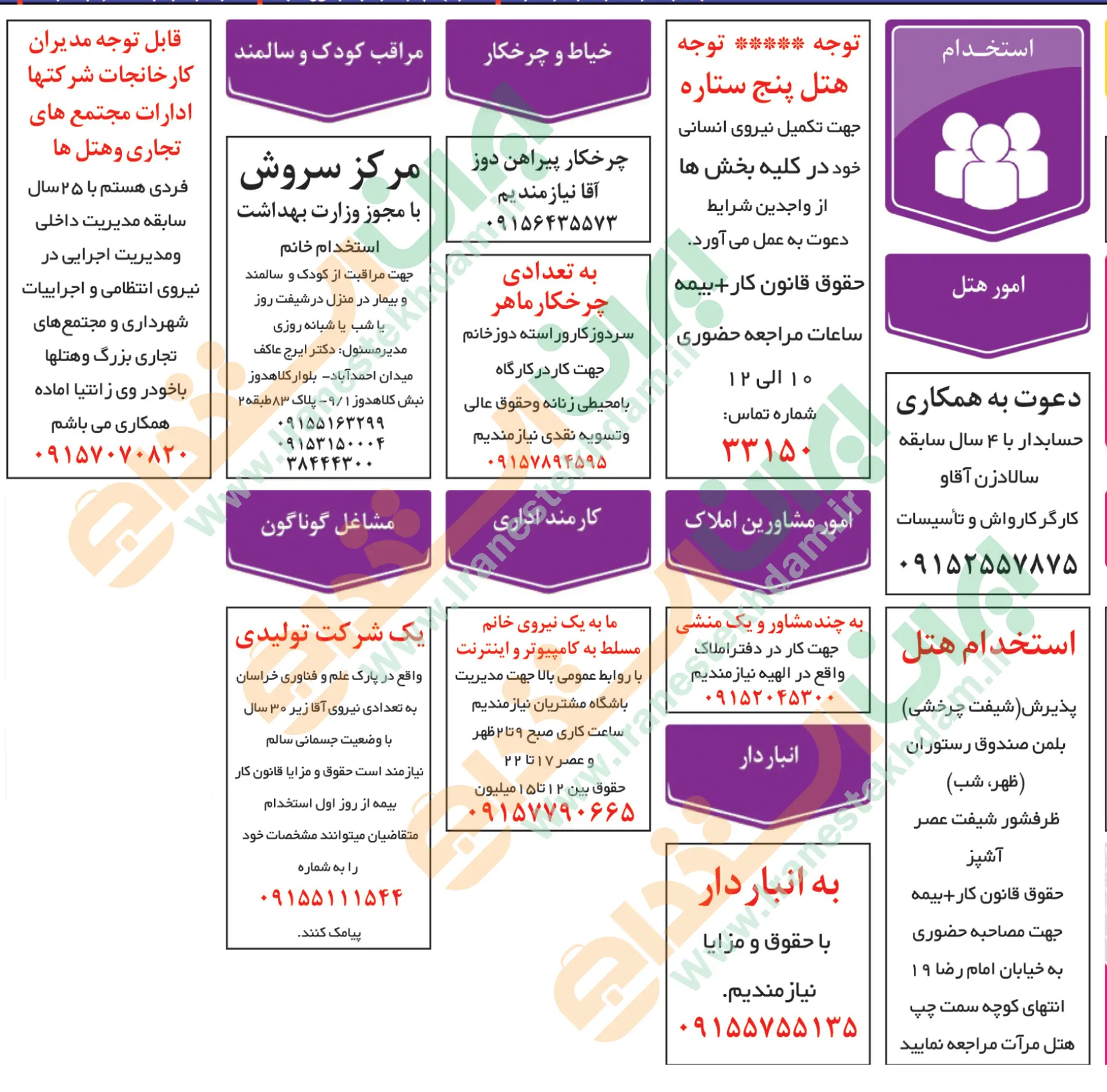 آگهی های استخدام استان خراسان و شهر مشهد