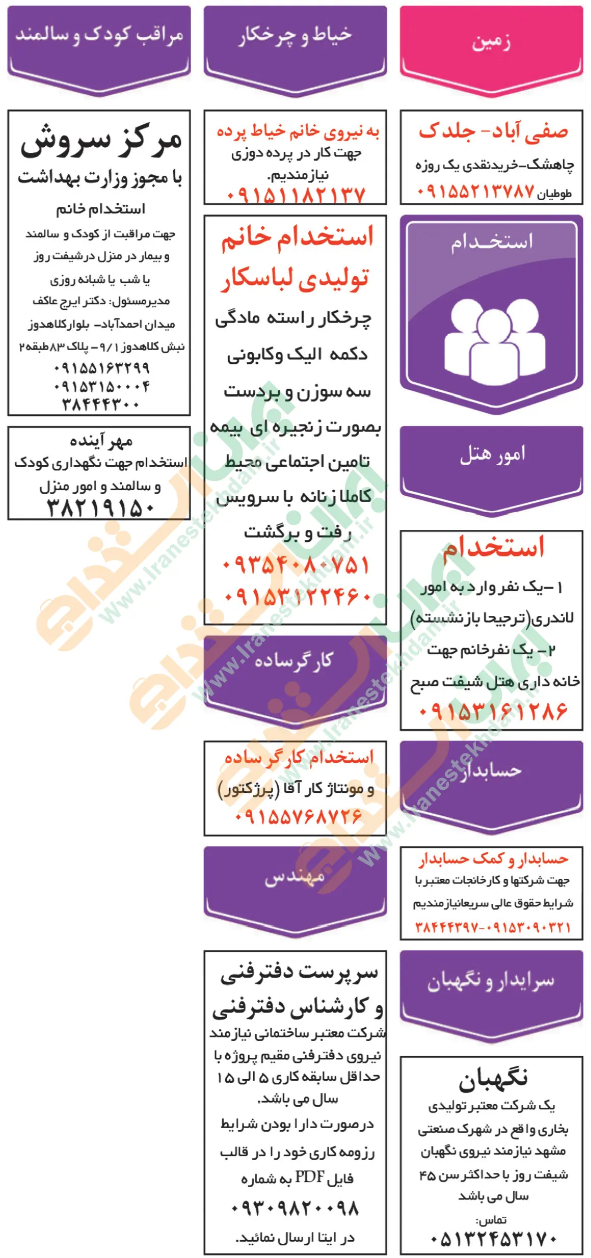 آگهی های استخدام استان خراسان و شهر مشهد