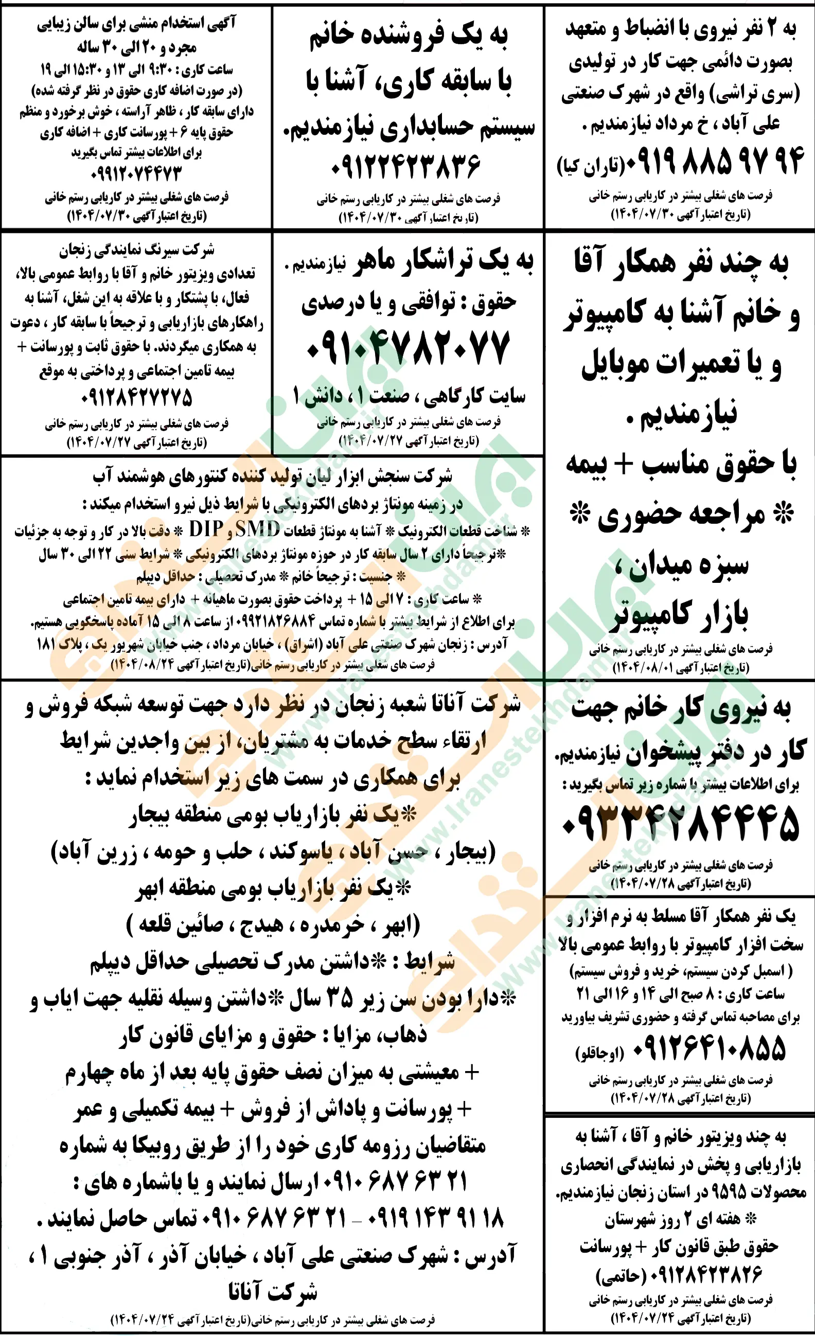 آگهی های استخدام استان زنجان