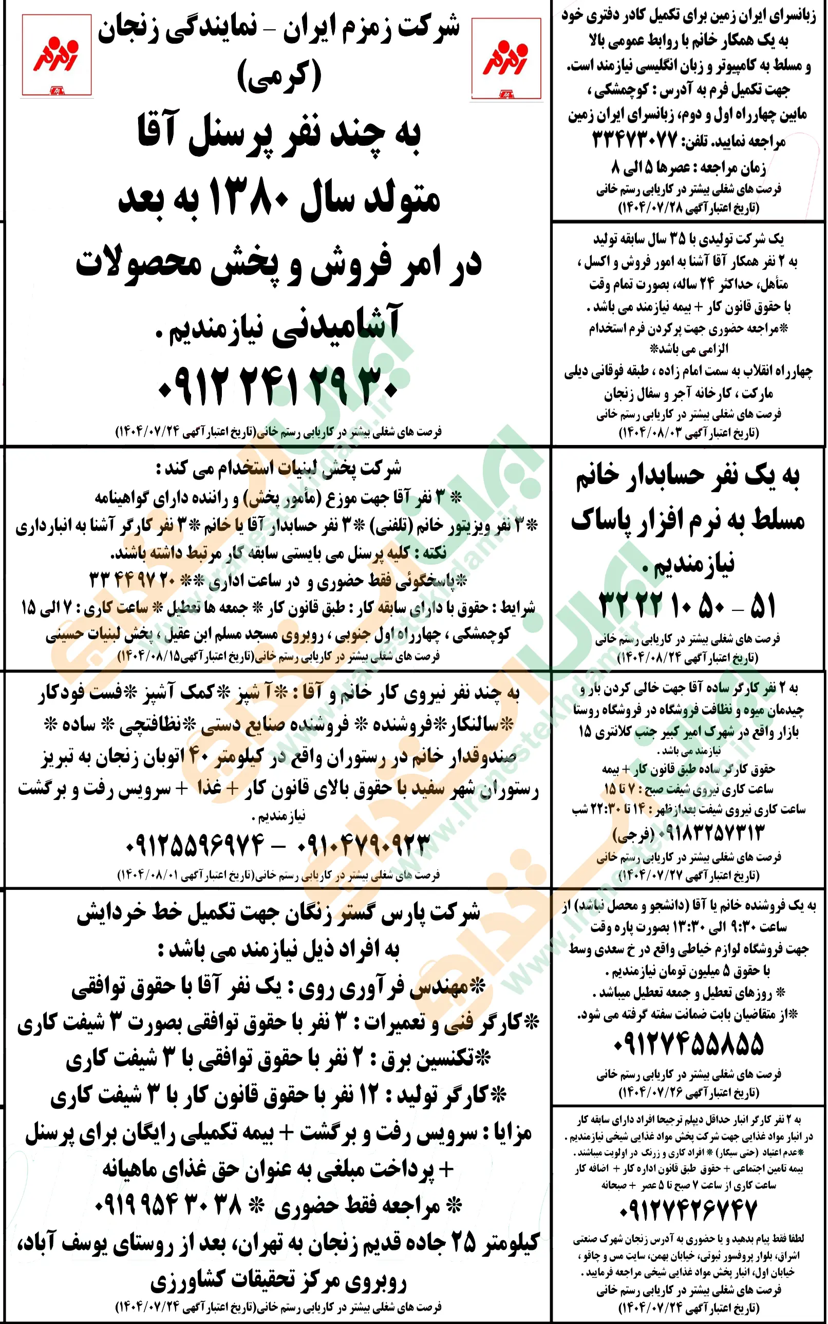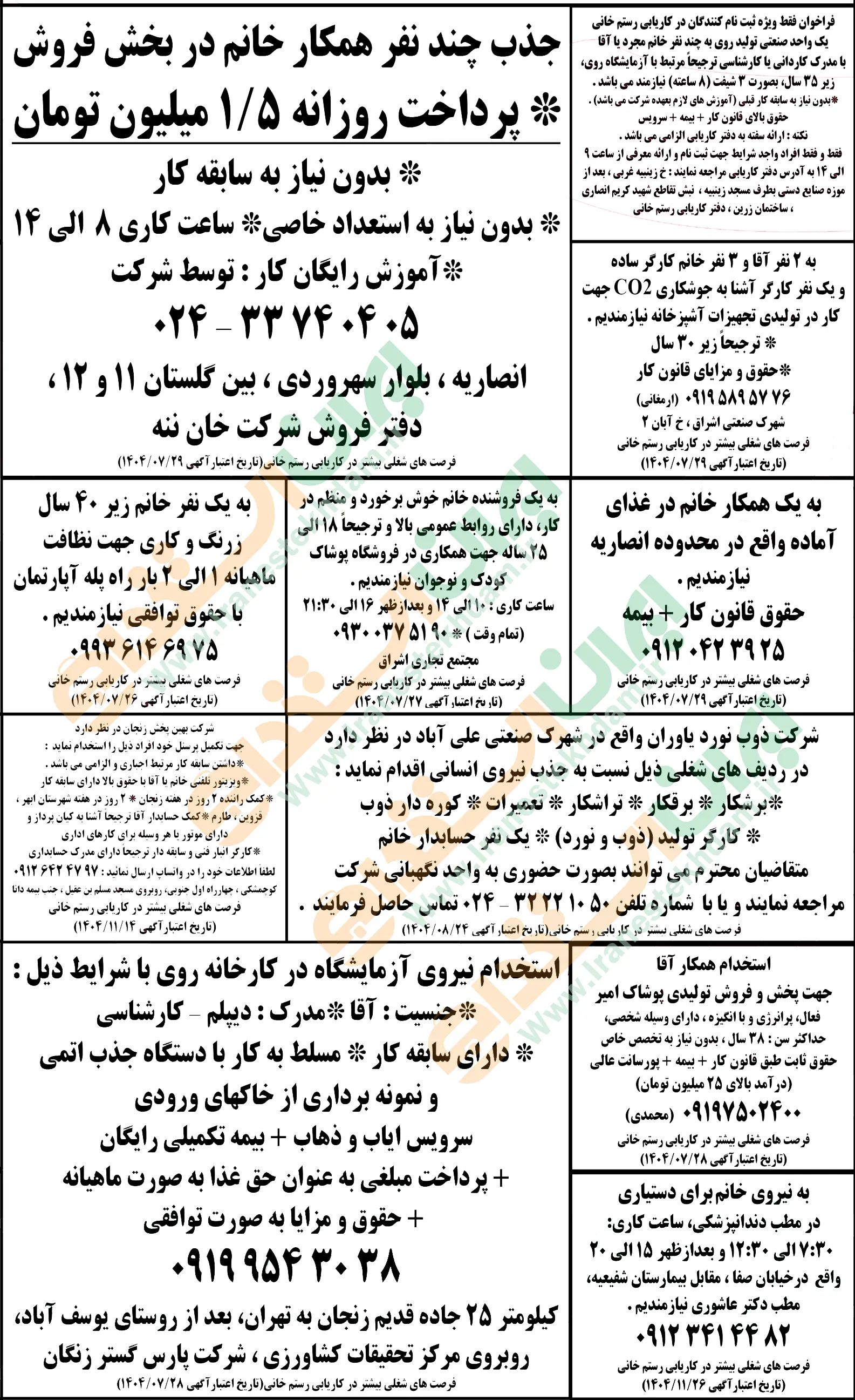 روزنامه استخدامی استان زنجان | پنجشنبه ۲۴ مهر ۱۴۰۴