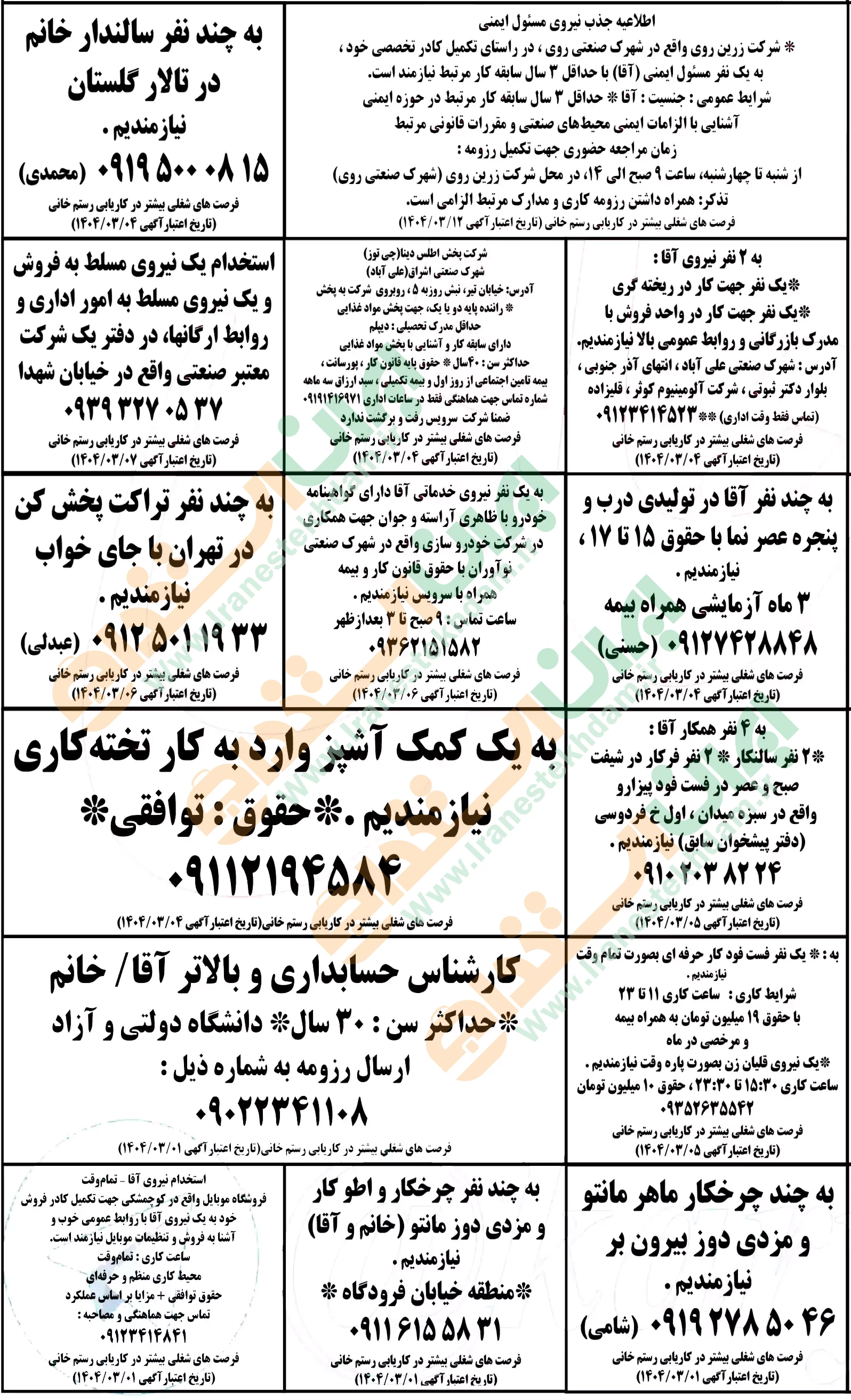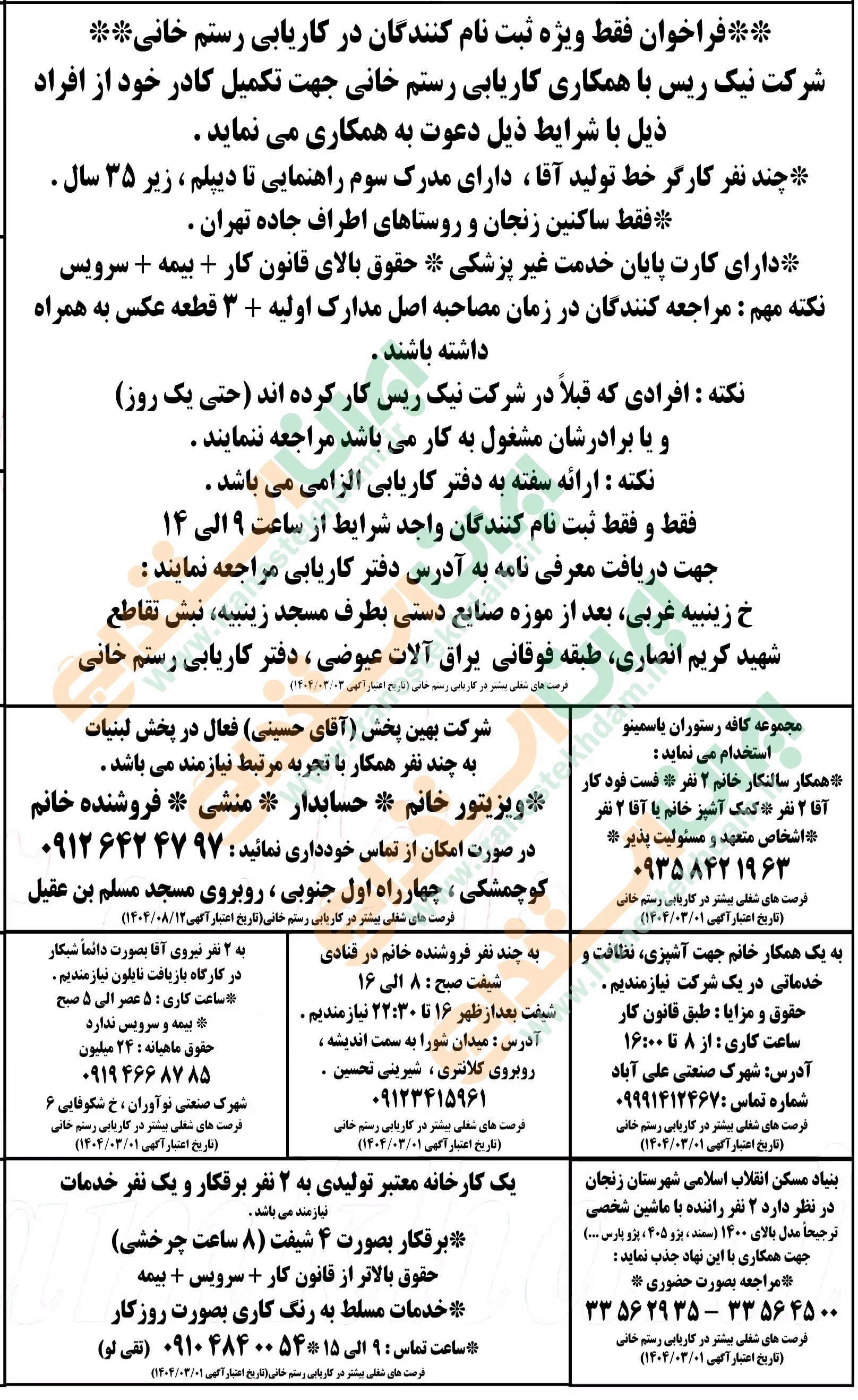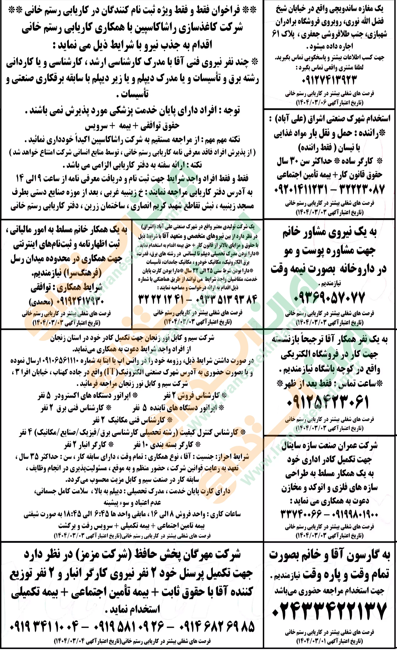 روزنامه استخدامی استان زنجان | پنجشنبه 1 خرداد 1404