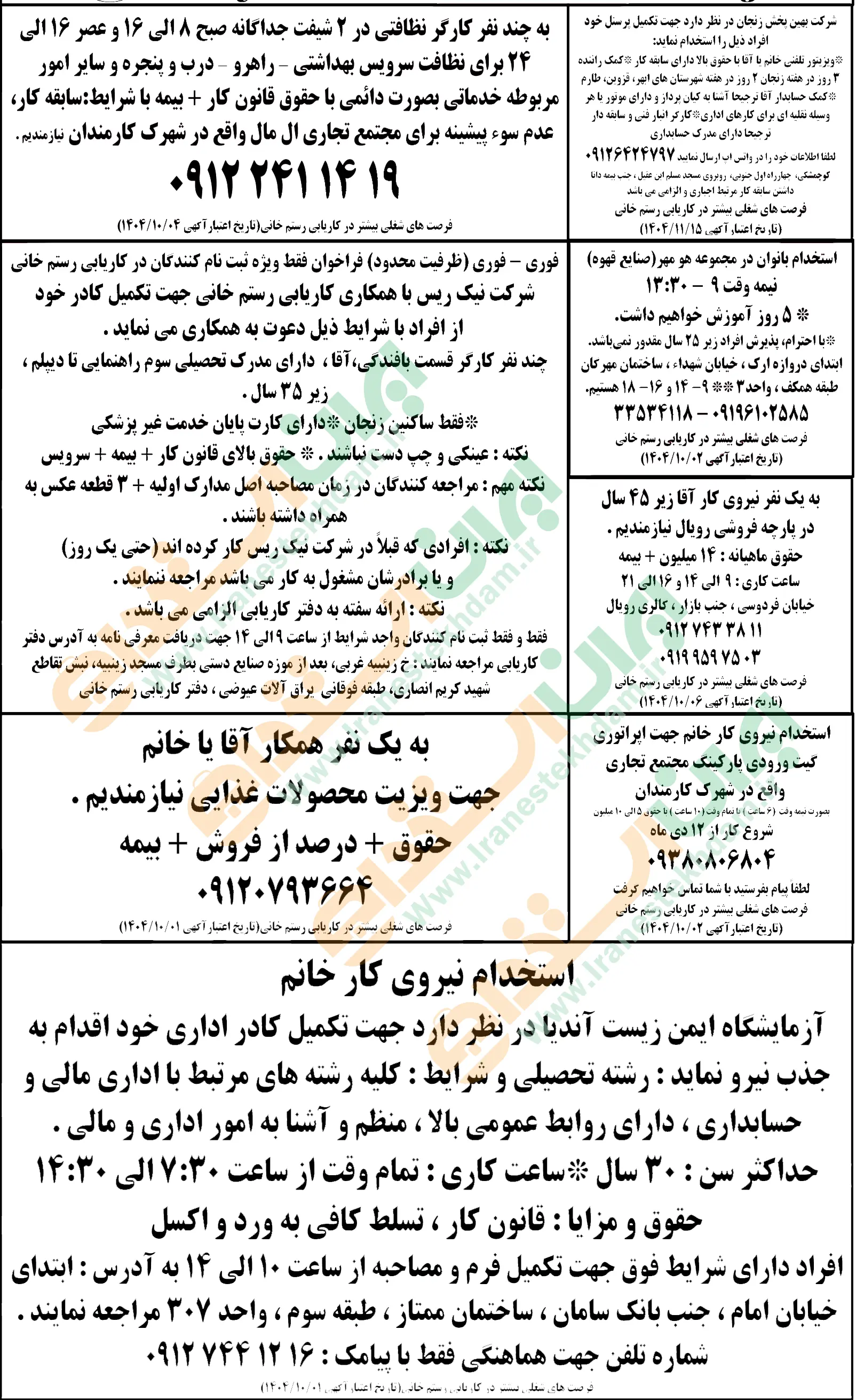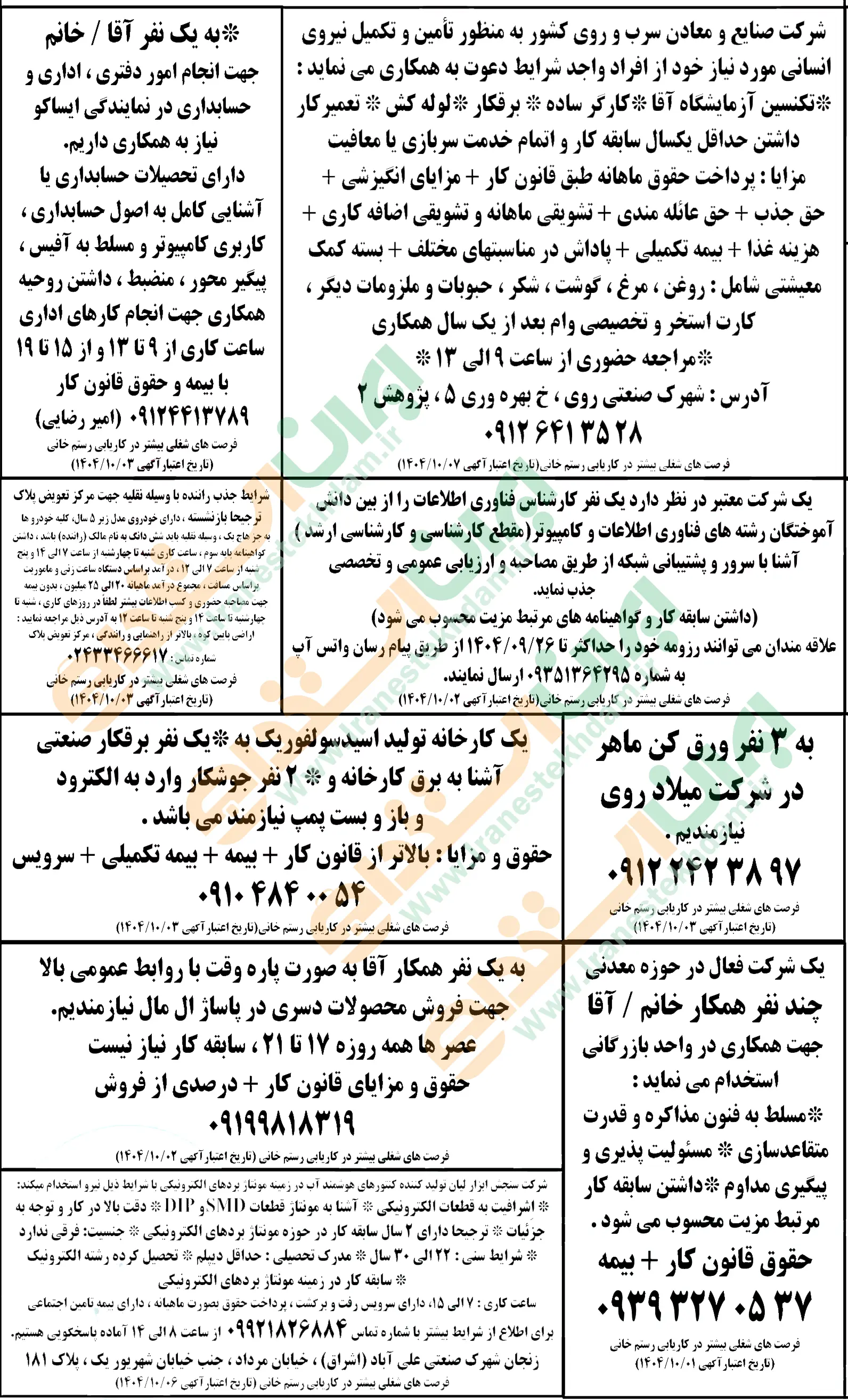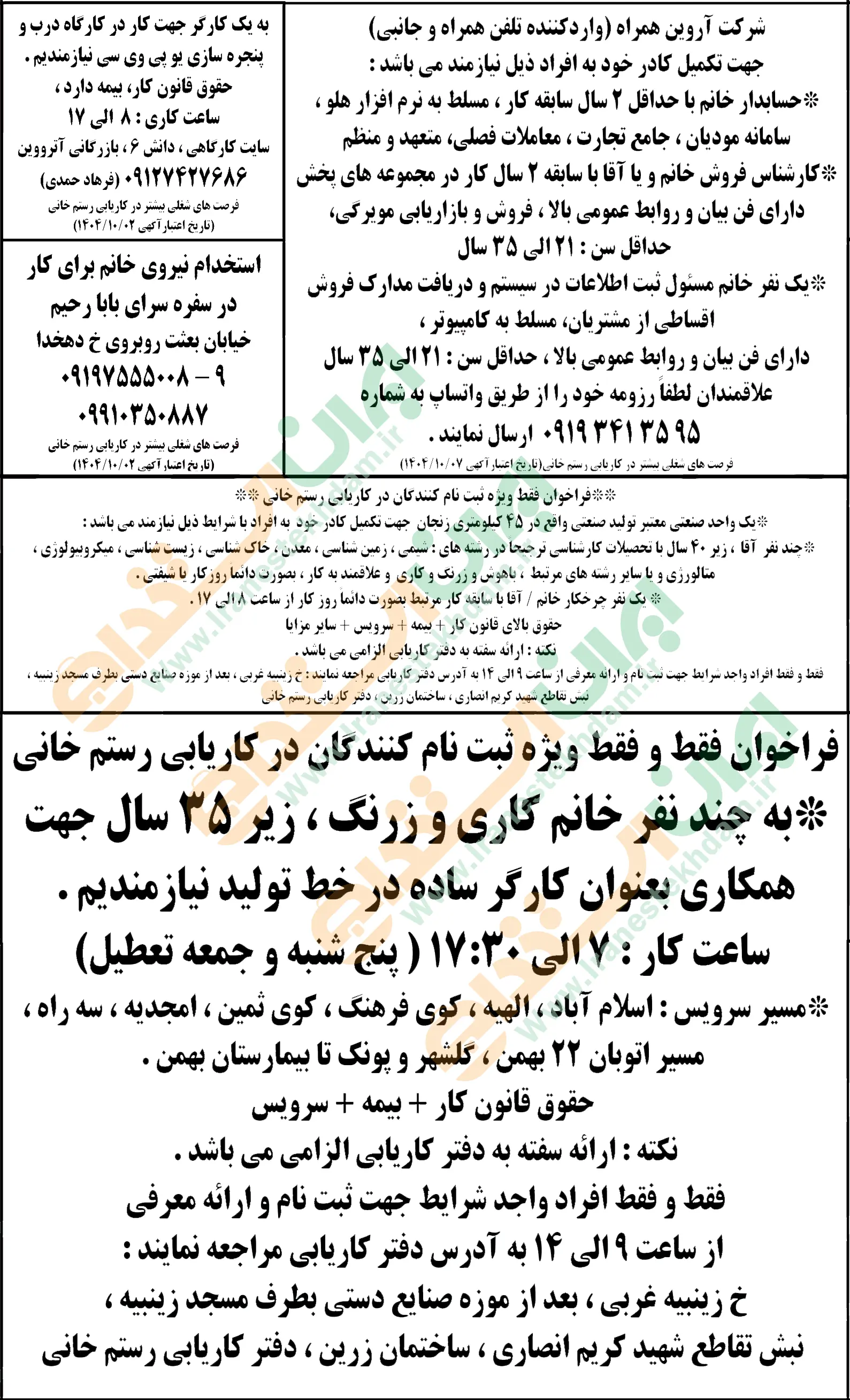 روزنامه استخدامی استان زنجان | دوشنبه ۱ دی ۱۴۰۴
