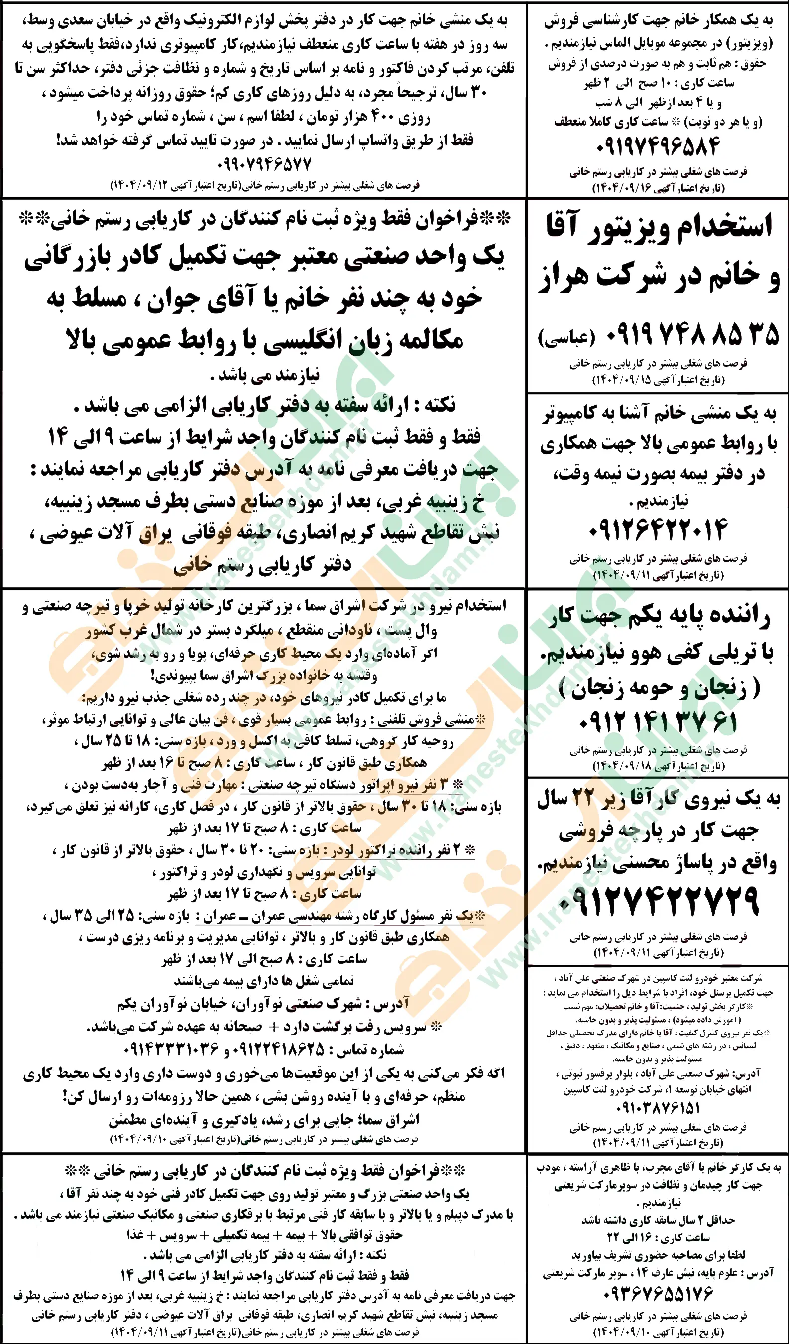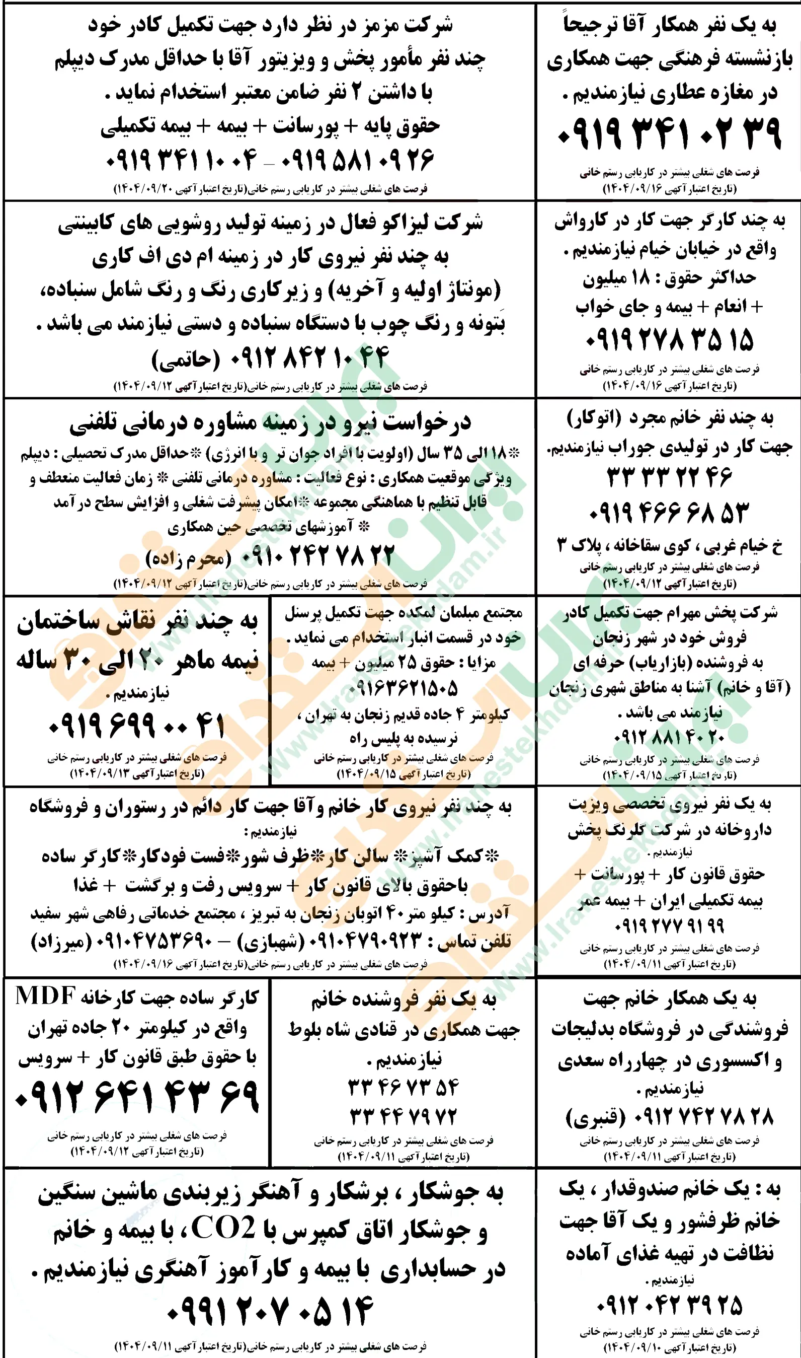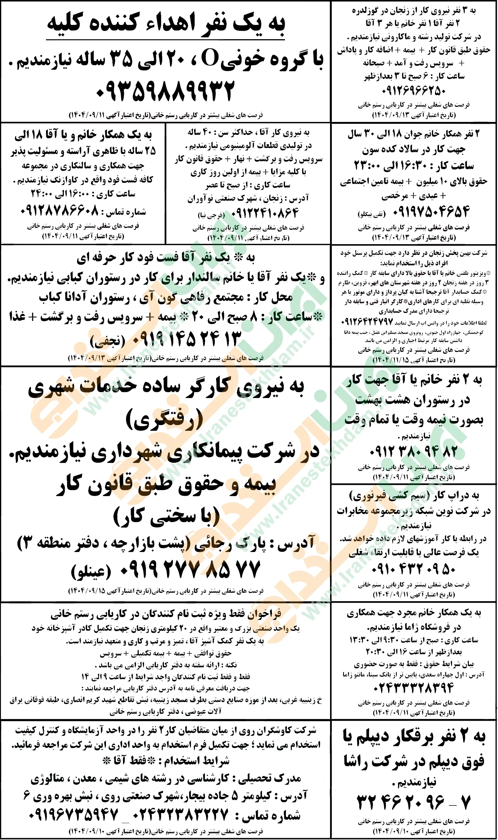روزنامه استخدامی استان زنجان | دوشنبه 10 آذر 1404