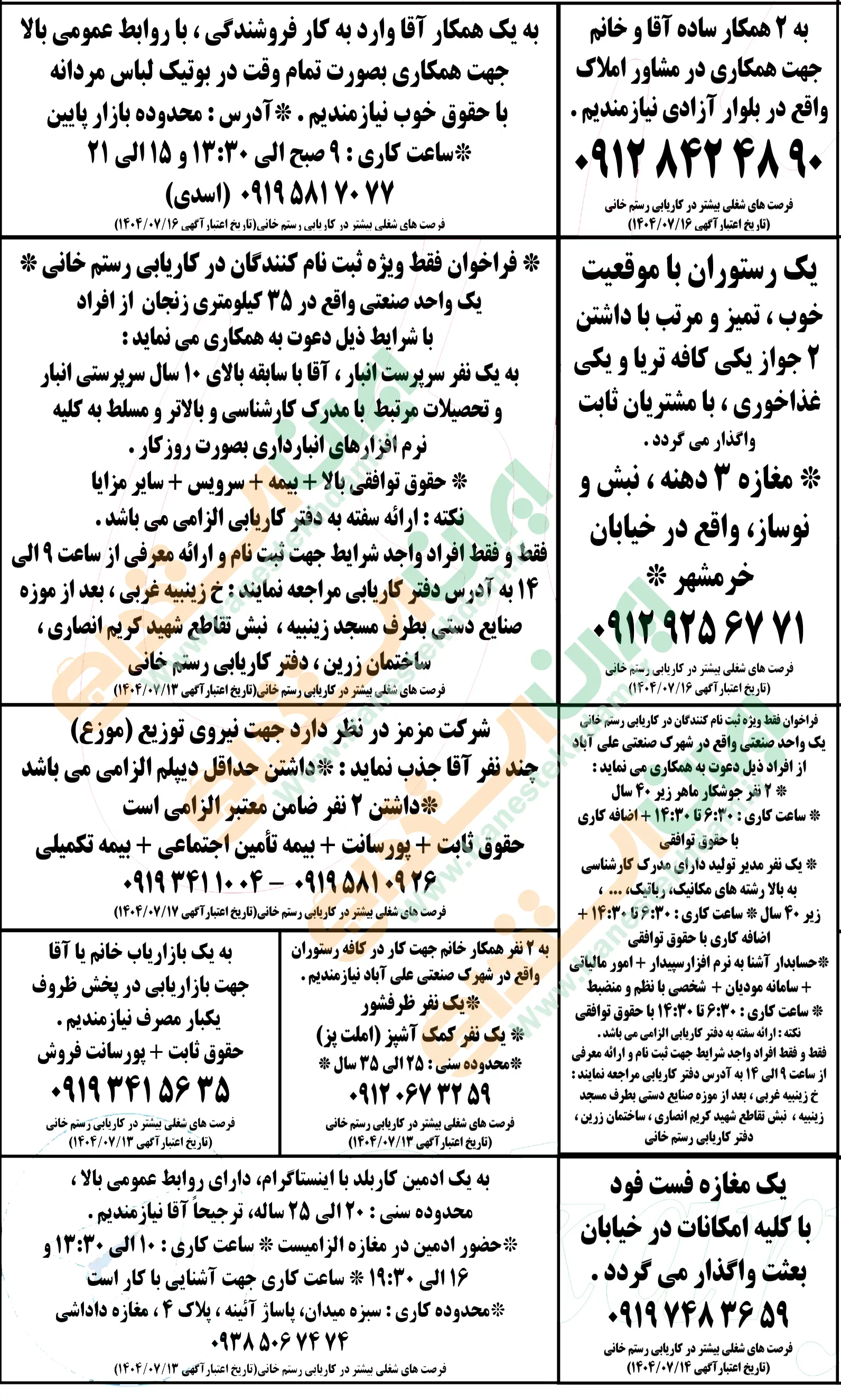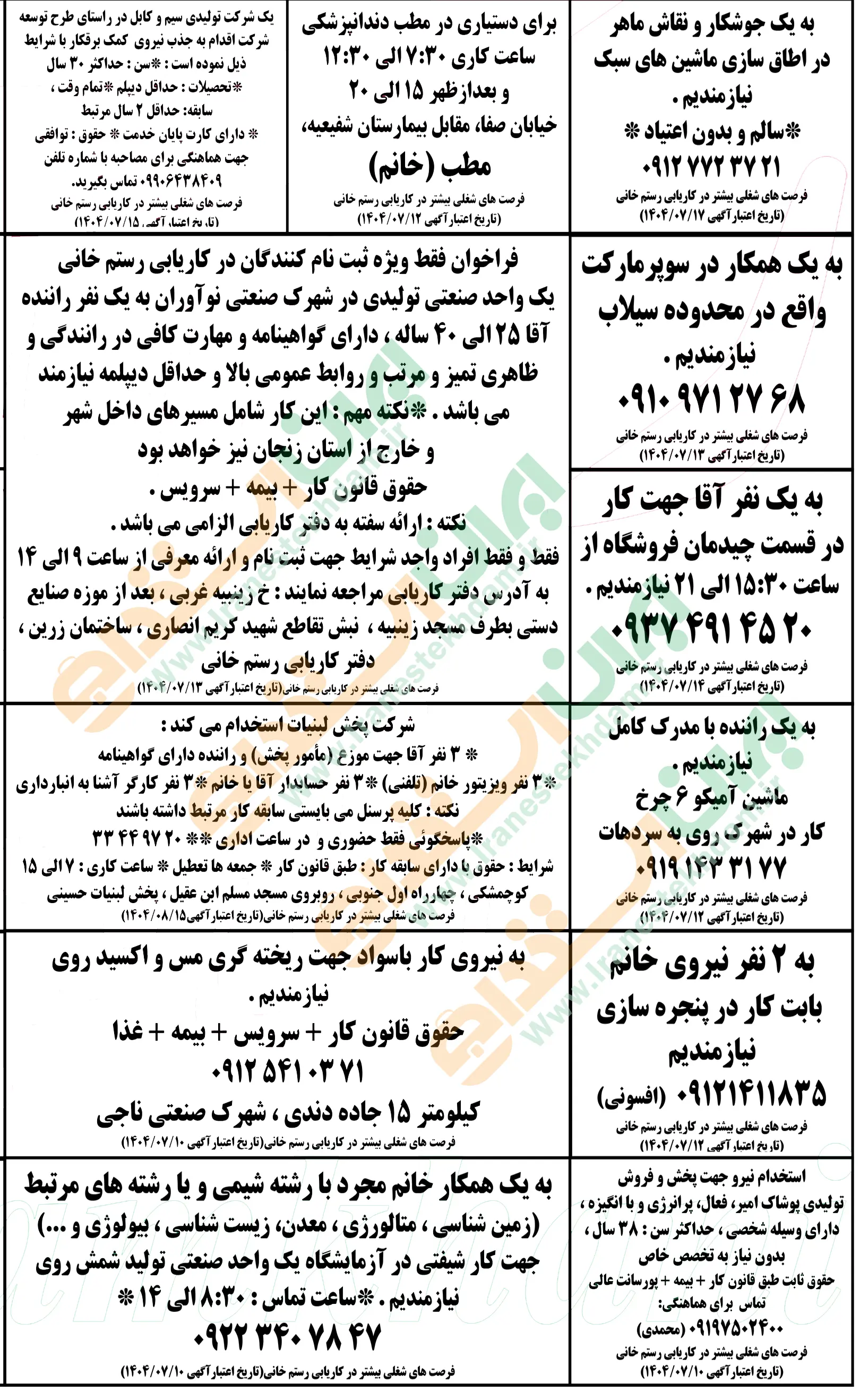 روزنامه استخدامی استان زنجان | پنجشنبه ۱۰ مهر ۱۴۰۴
