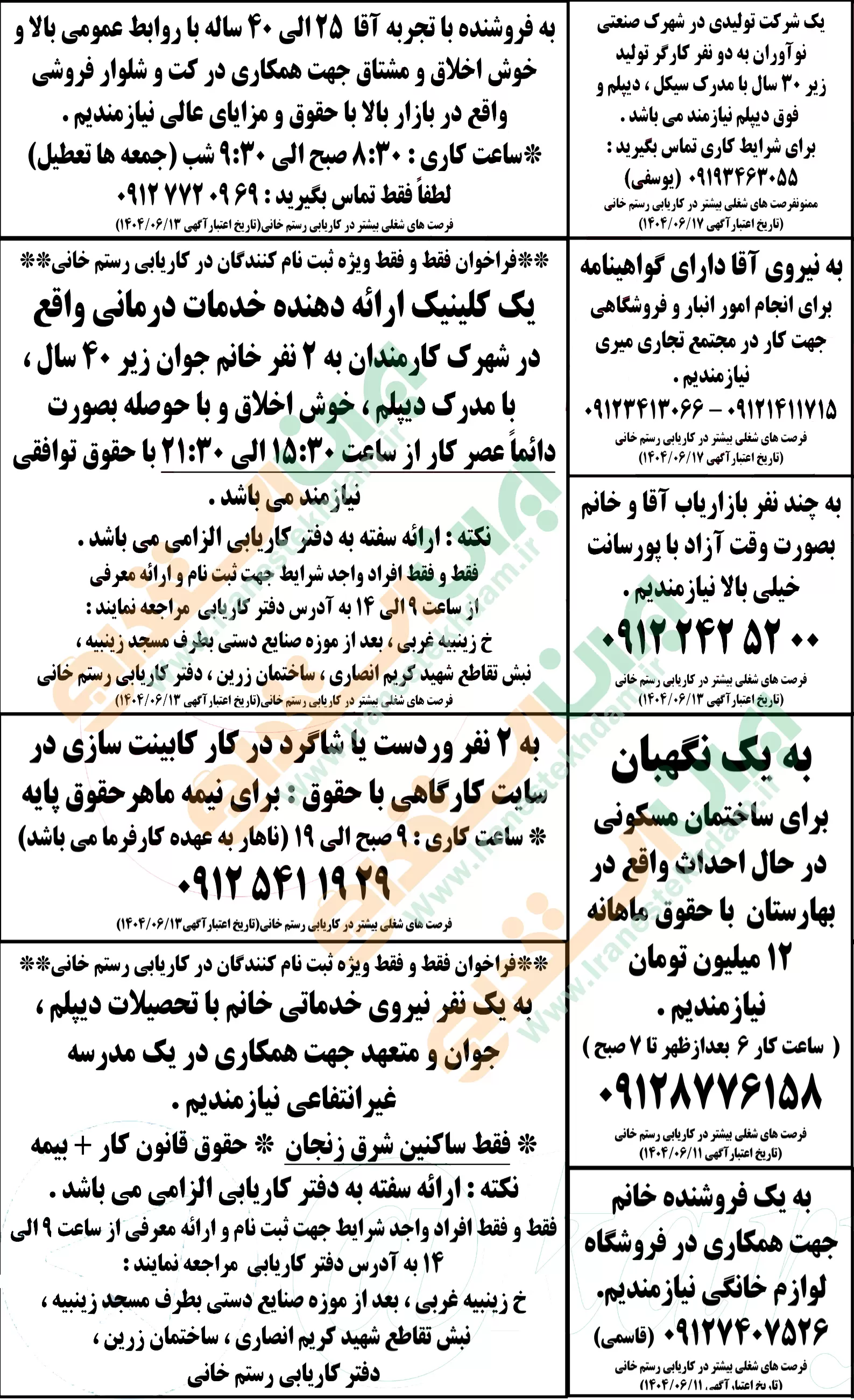 روزنامه استخدامی استان زنجان | سه شنبه 11 شهریور 1404