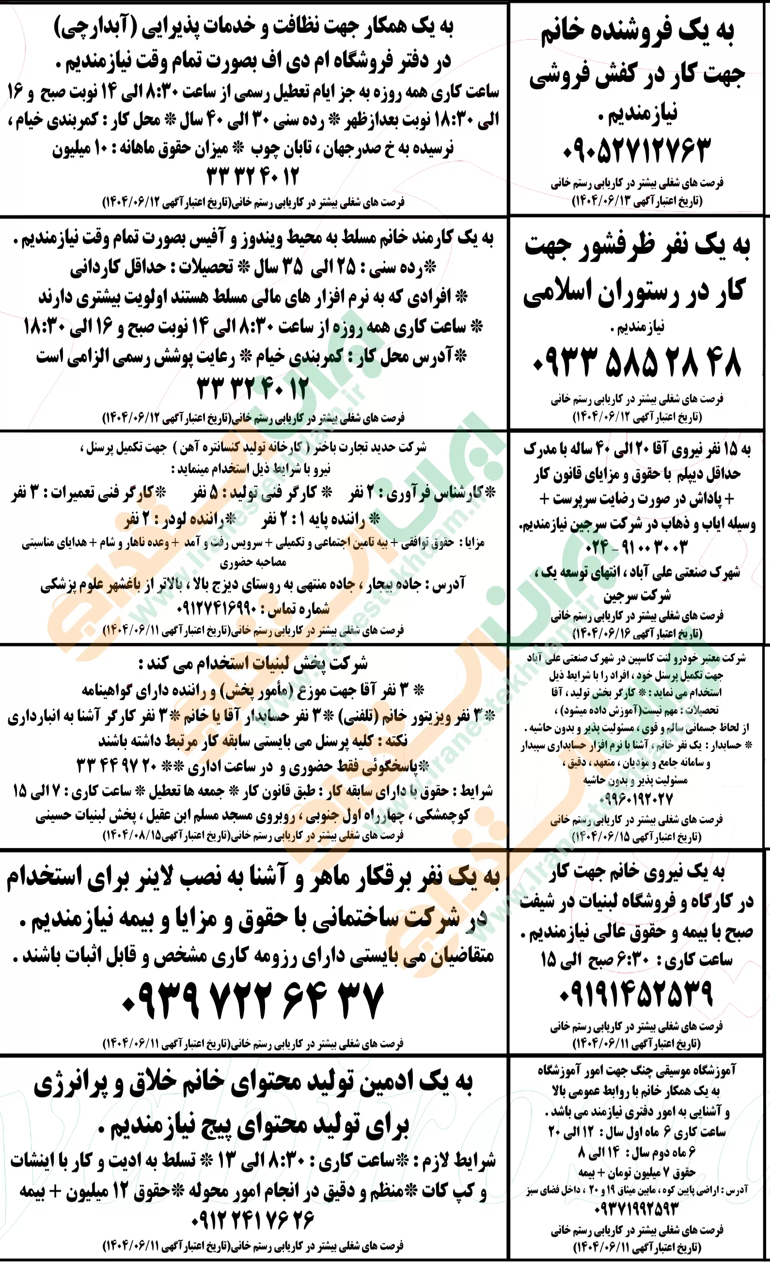 (نیازمندی های استخدامی)