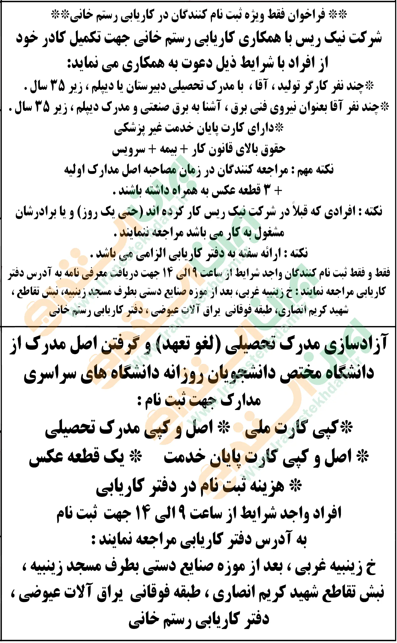 (نیازمندی های استخدامی)