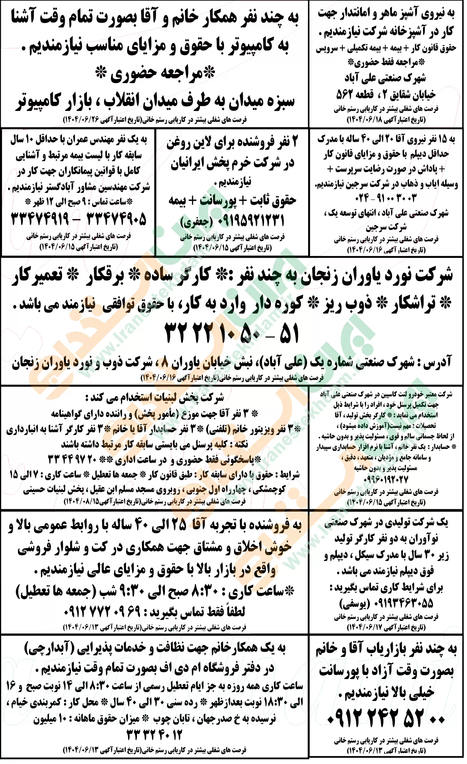 روزنامه استخدامی استان زنجان | پنجشنبه 13 شهریور 1404