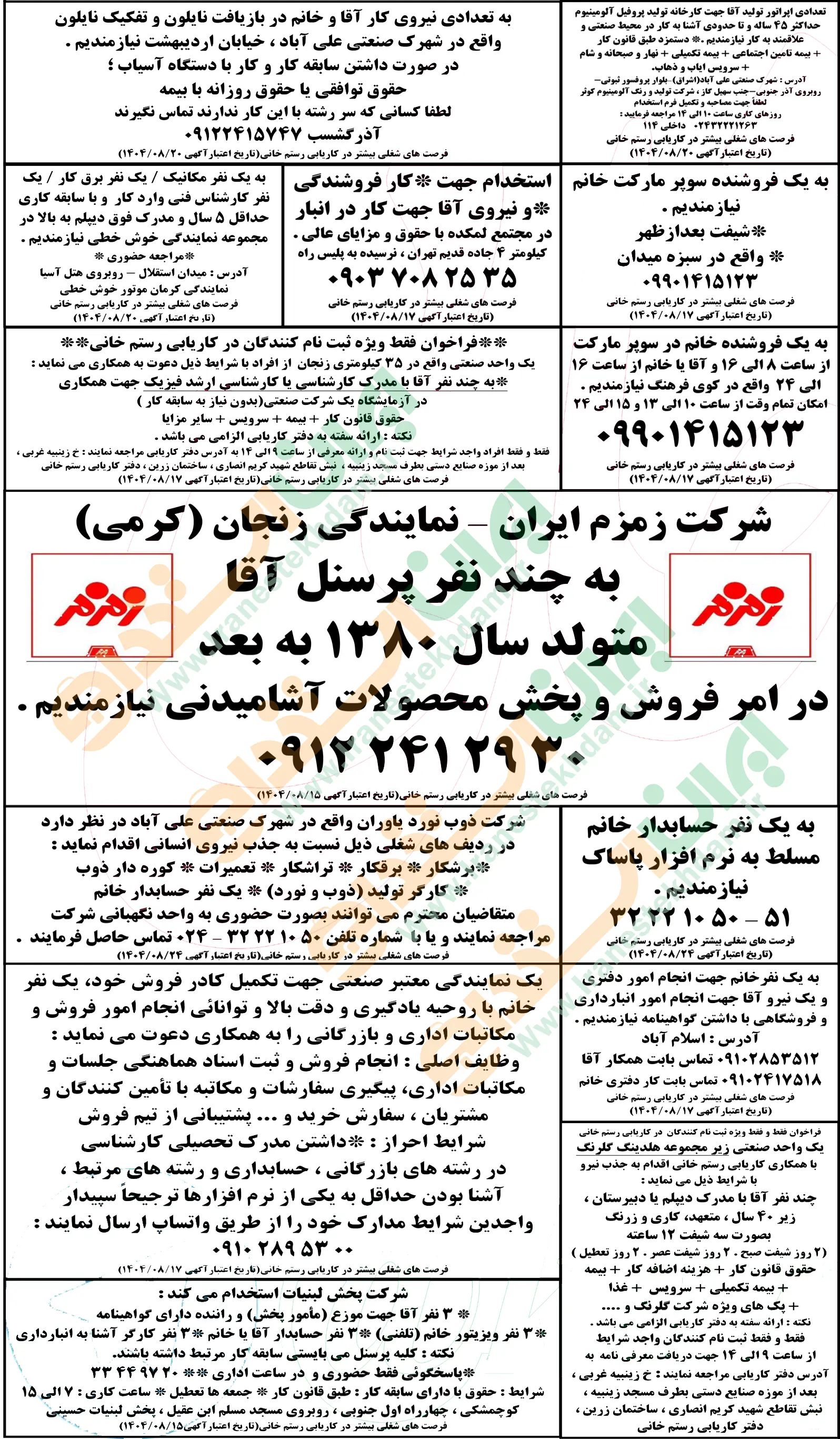 روزنامه استخدامی استان زنجان | چهارشنبه 14 آبان 1404