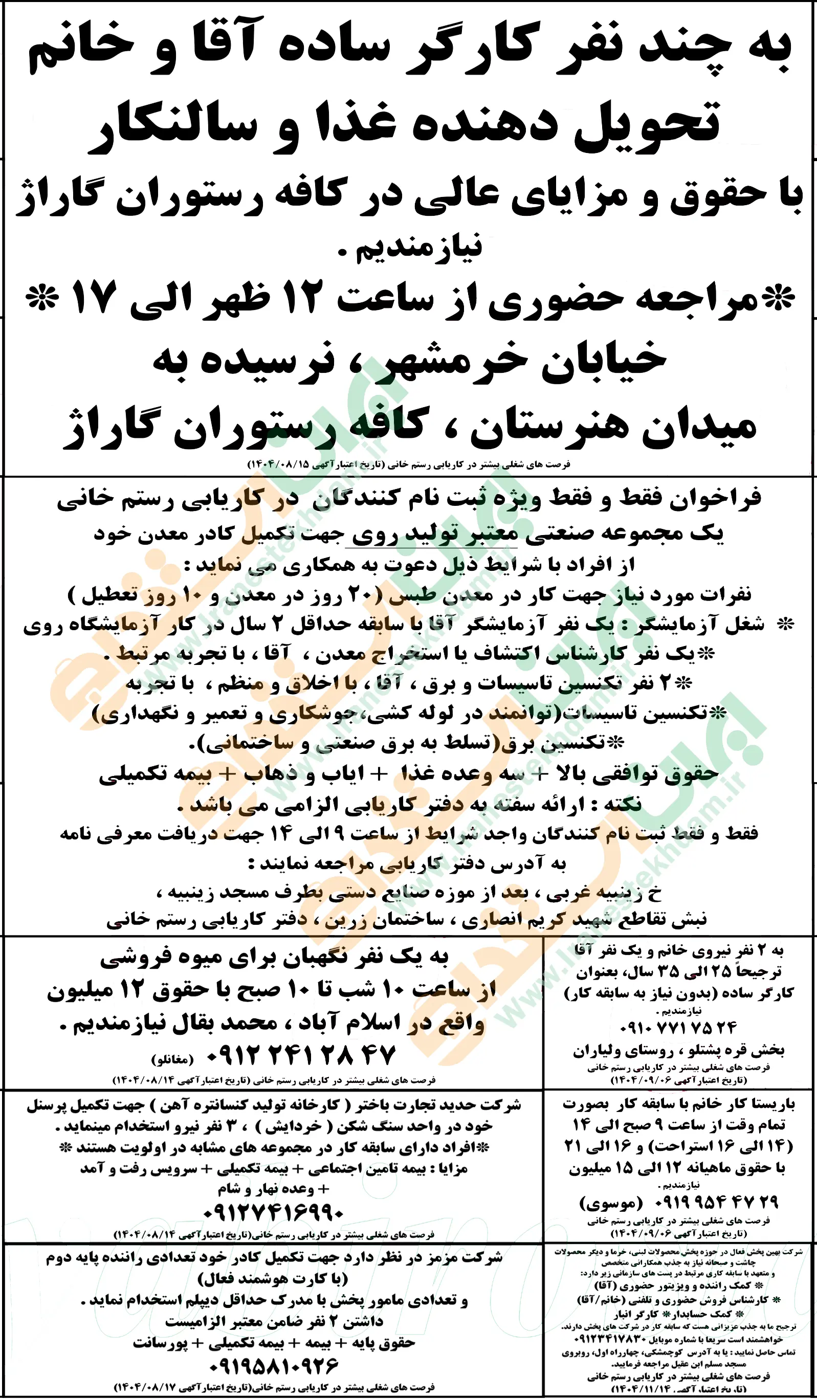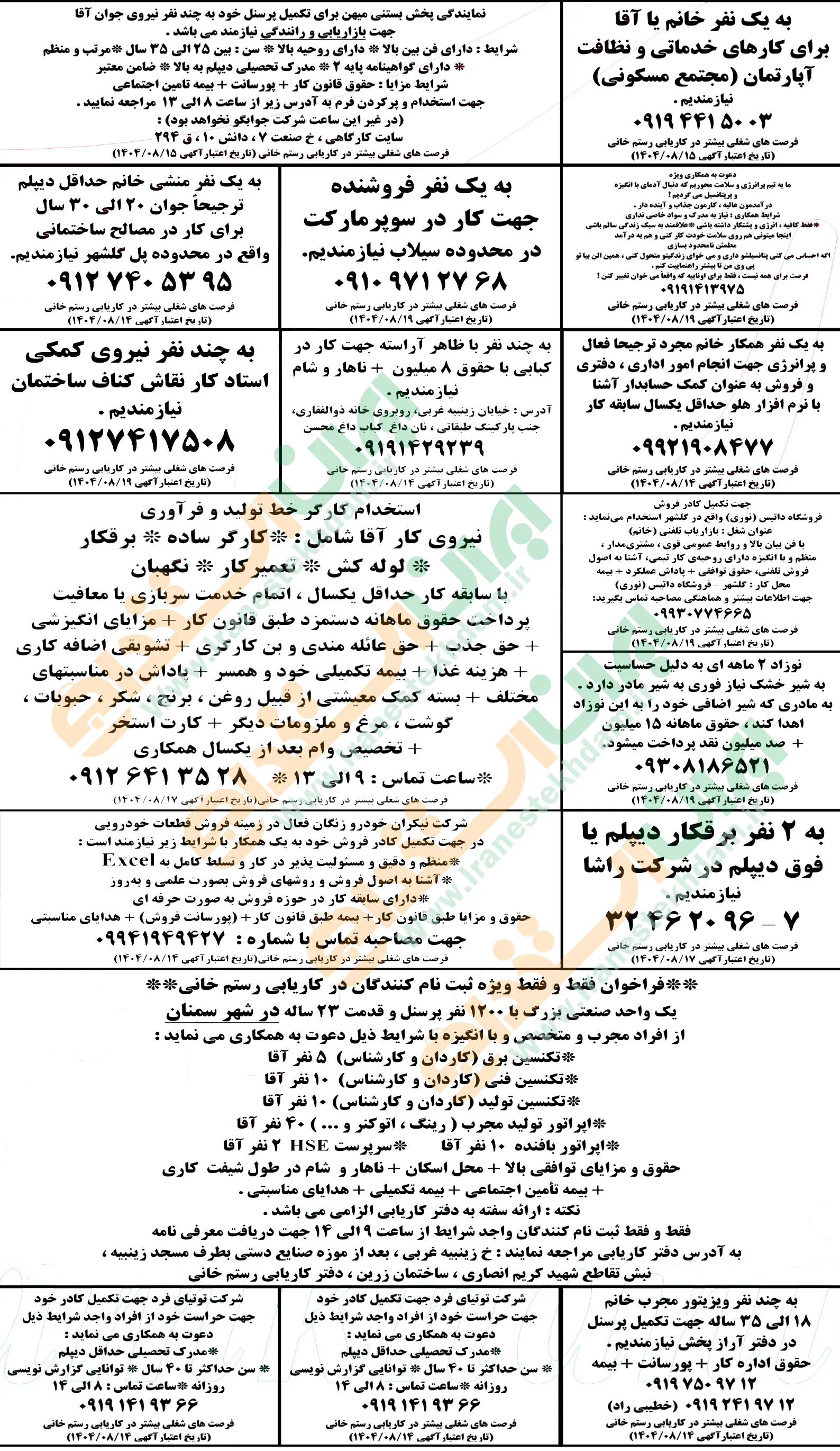 روزنامه استخدامی استان زنجان | چهارشنبه ۱۴ آبان ۱۴۰۴