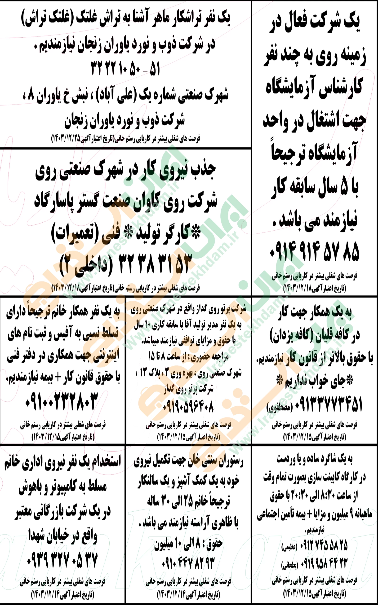 روزنامه استخدامی استان زنجان | سه شنبه ۱۴ اسفند ۱۴۰۳