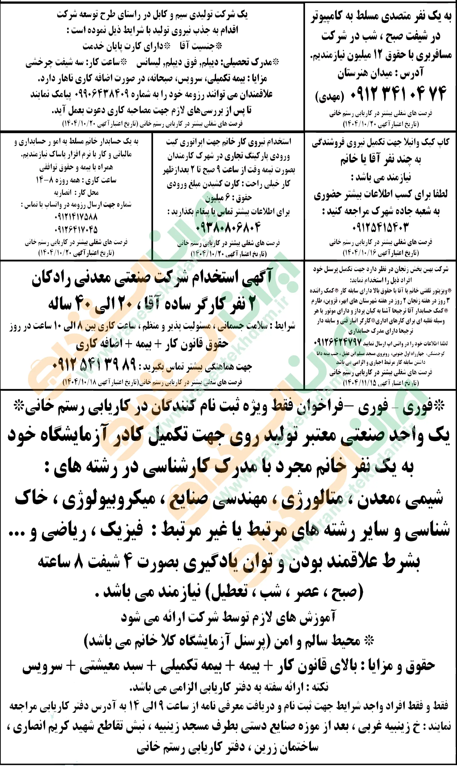 (نیازمندی های استخدامی)