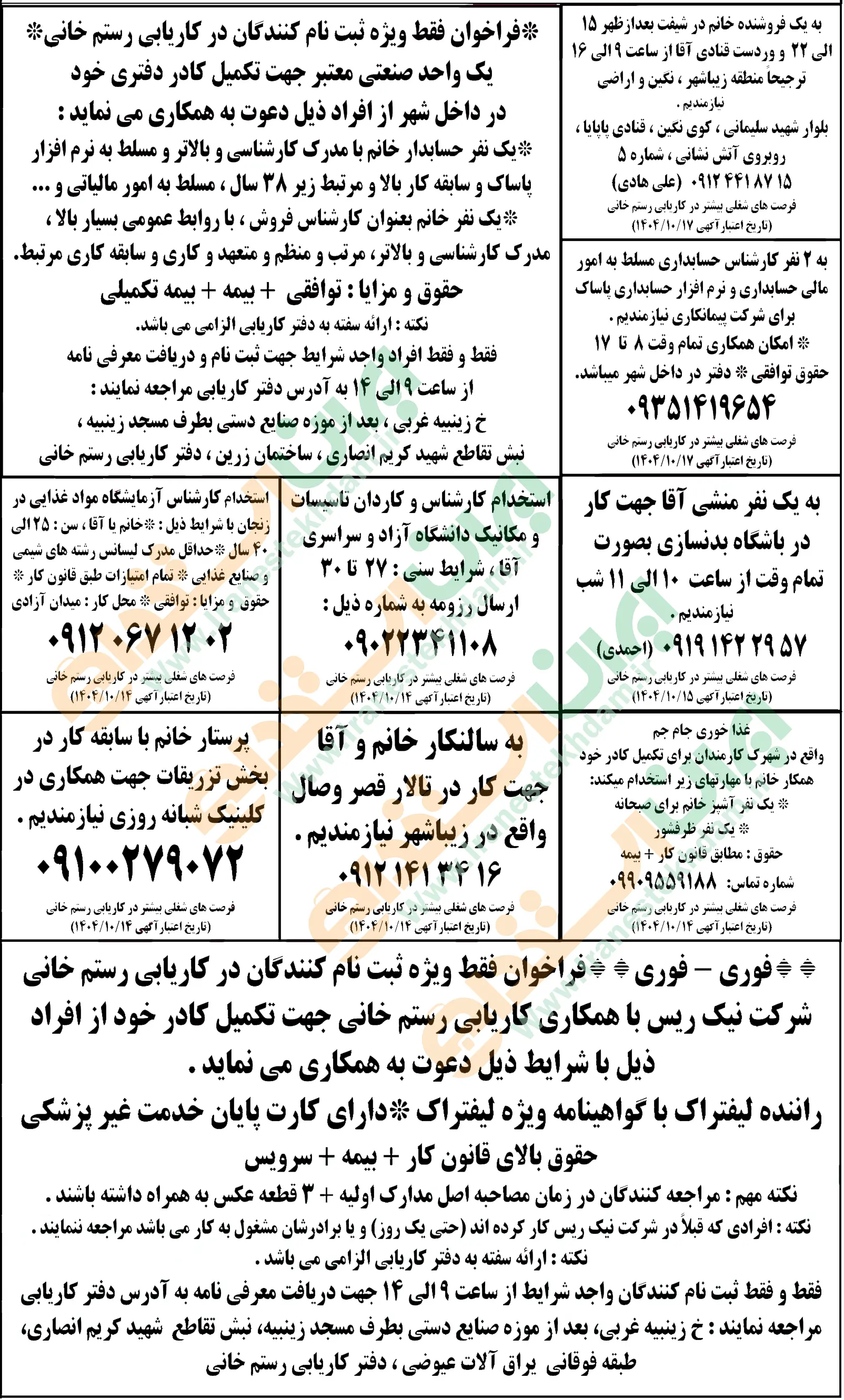 روزنامه استخدامی استان زنجان | یکشنبه 14 دی 1404