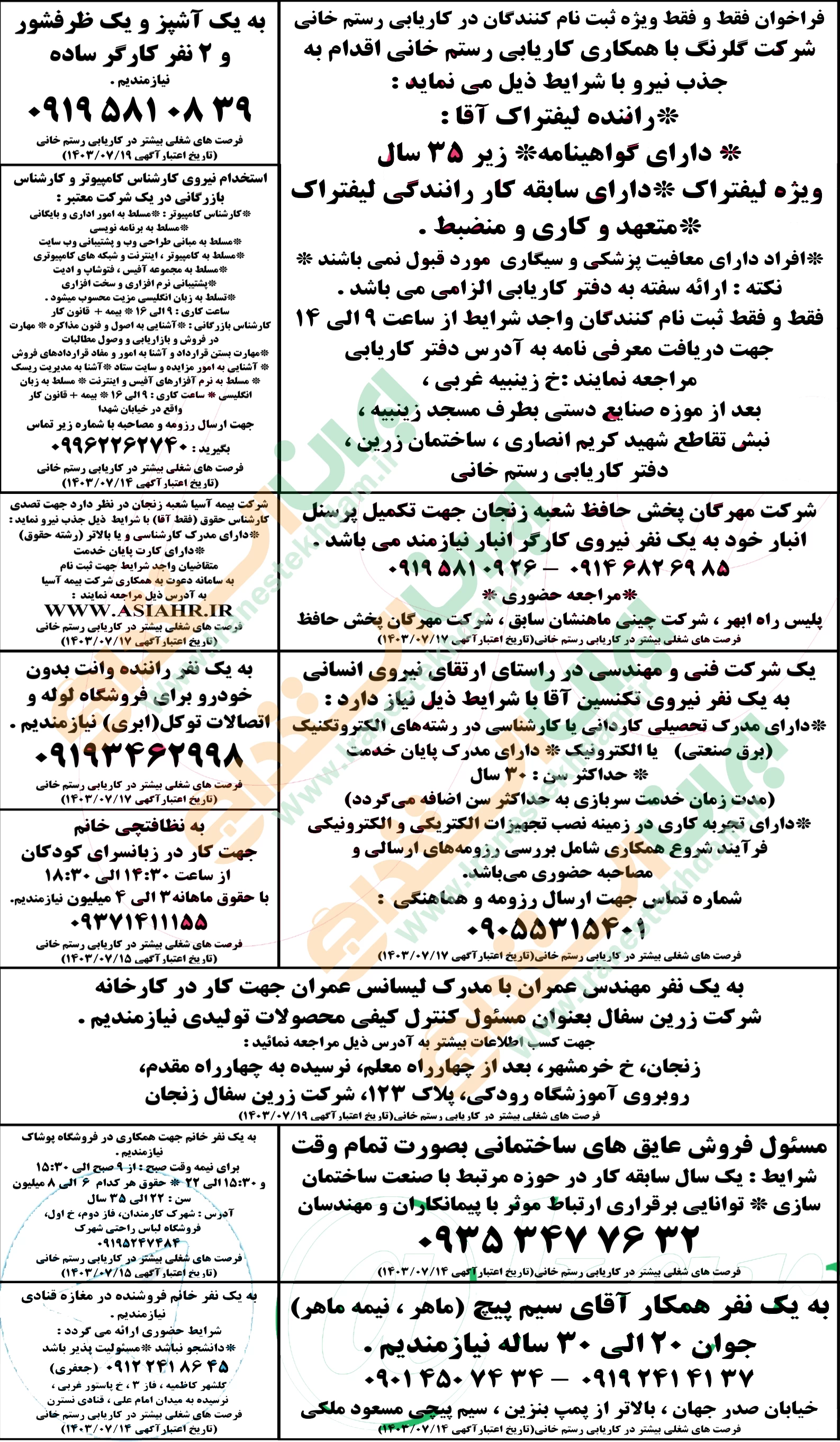 آگهی های استخدام استان زنجان