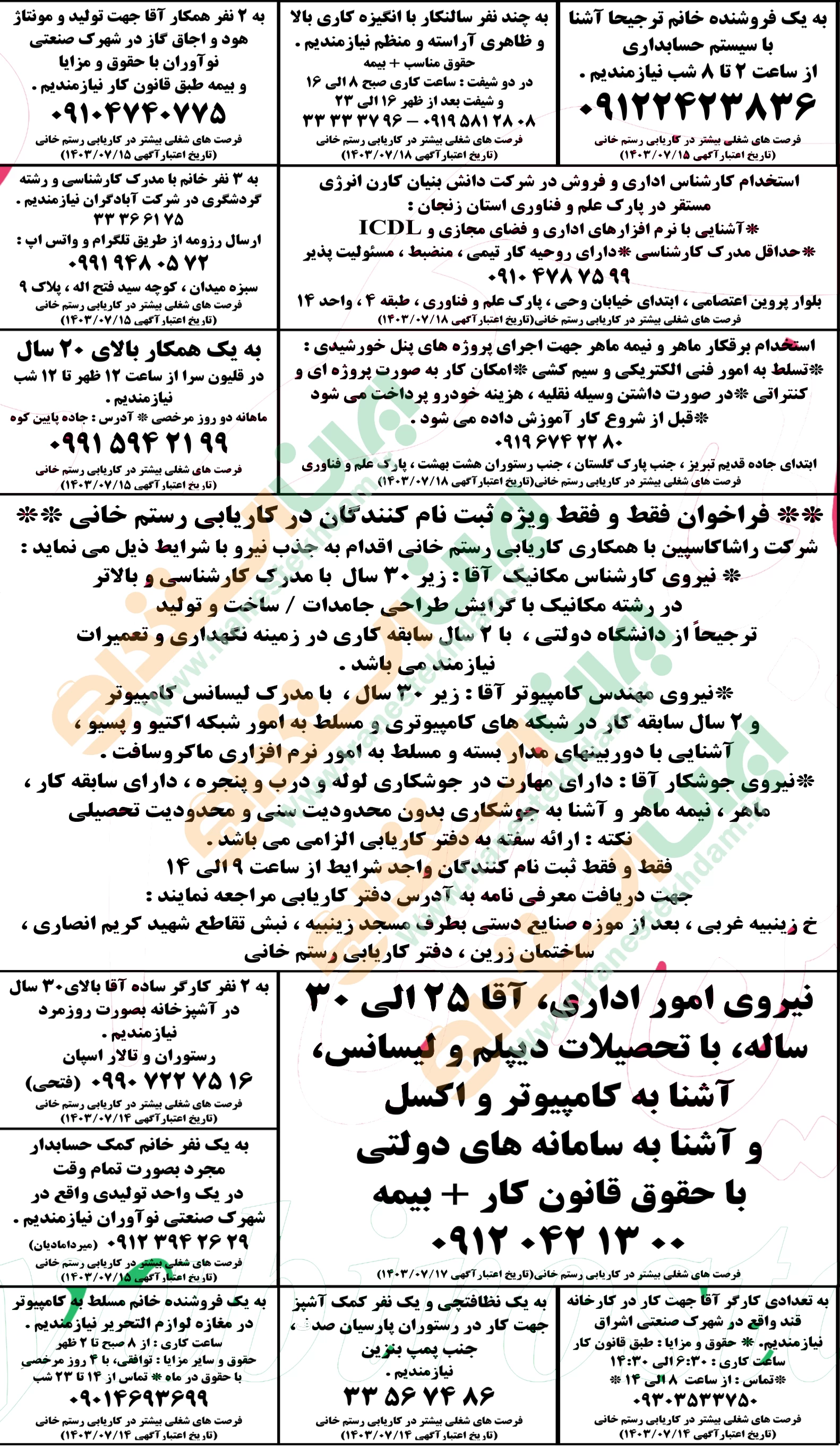 روزنامه استخدامی استان زنجان | شنبه ۱۴ مهر ۱۴۰۳