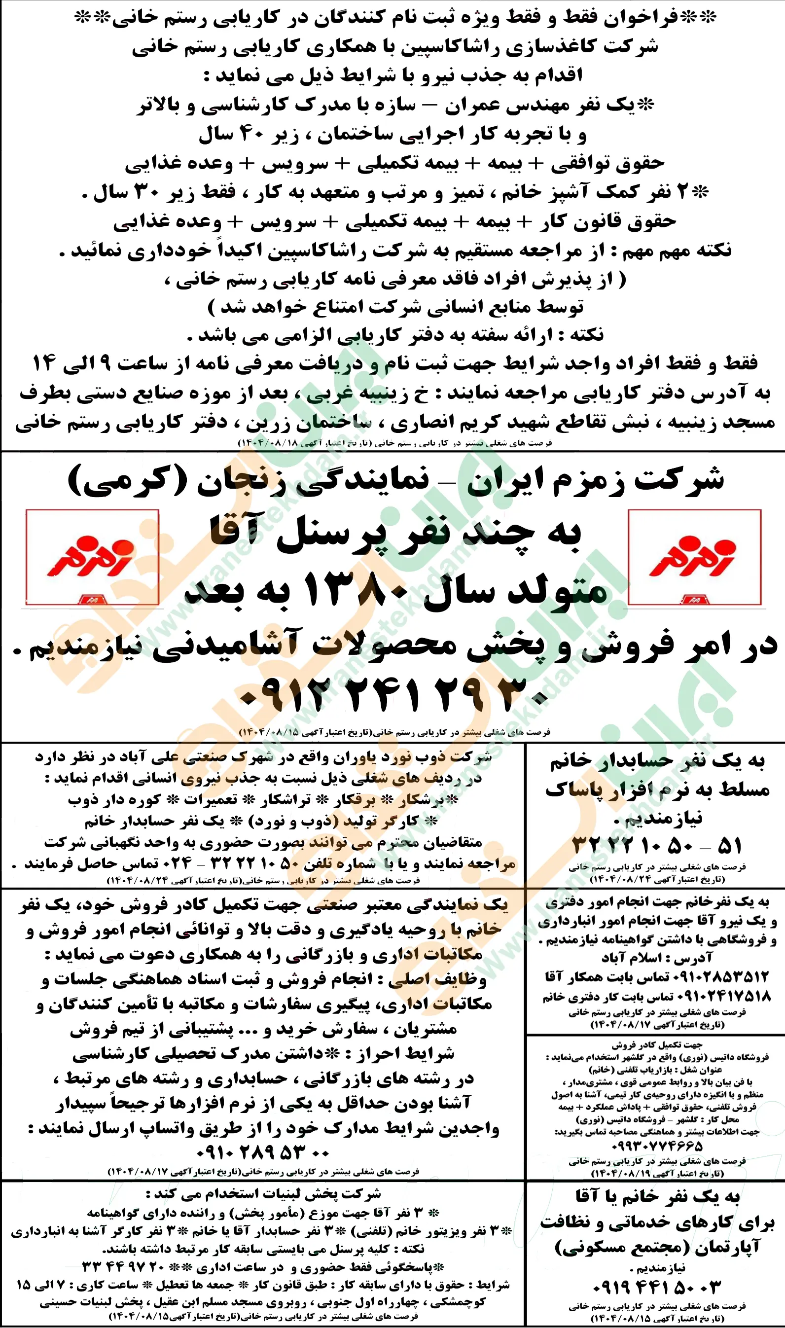 آگهی های استخدام استان زنجان