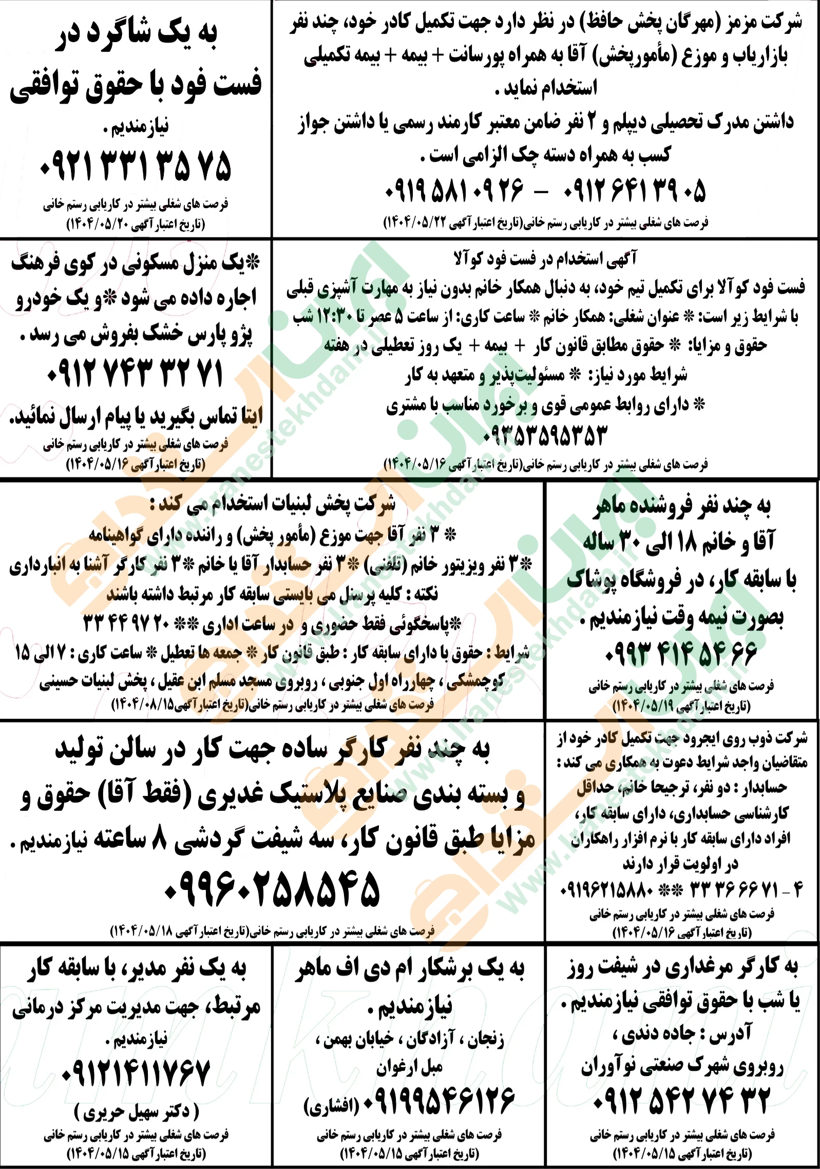 روزنامه استخدامی استان زنجان | چهارشنبه 15 مرداد 1404