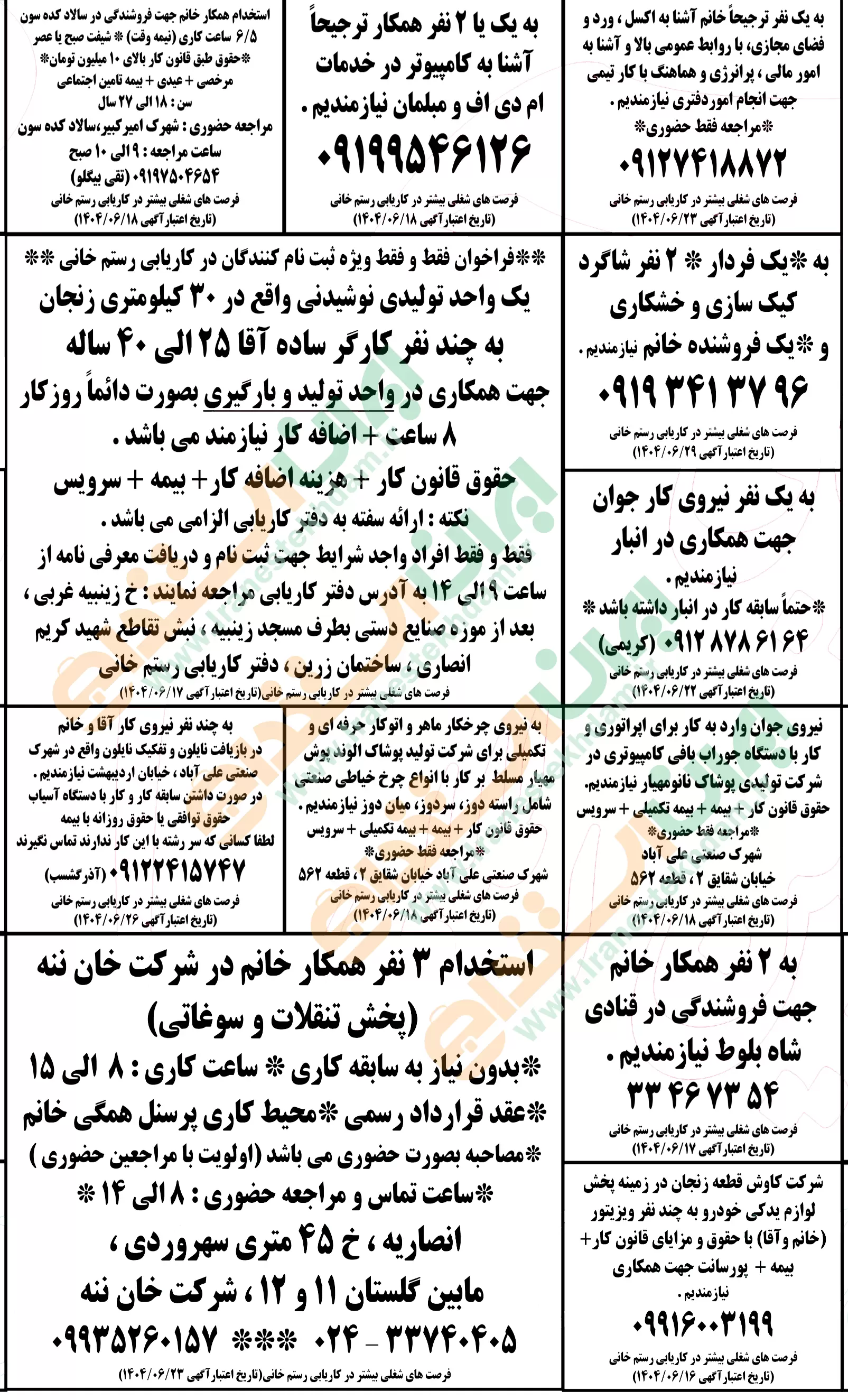 آگهی های استخدام استان زنجان