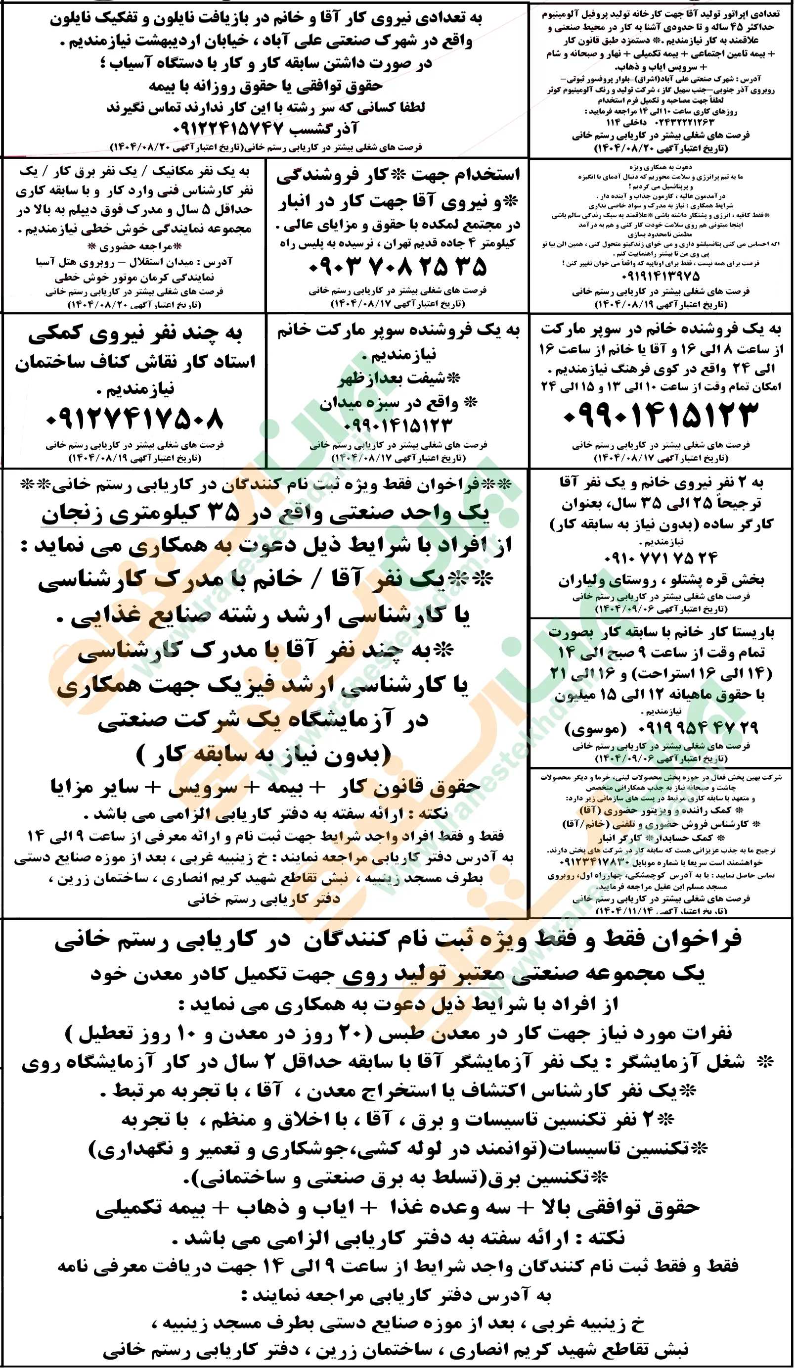 روزنامه استخدامی استان زنجان | شنبه ۱۷ آبان ۱۴۰۴