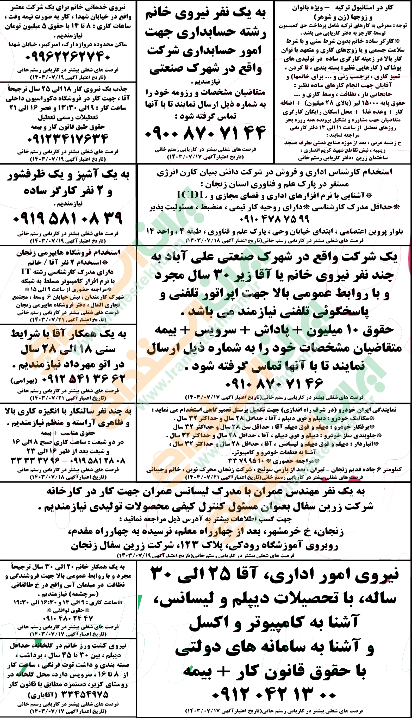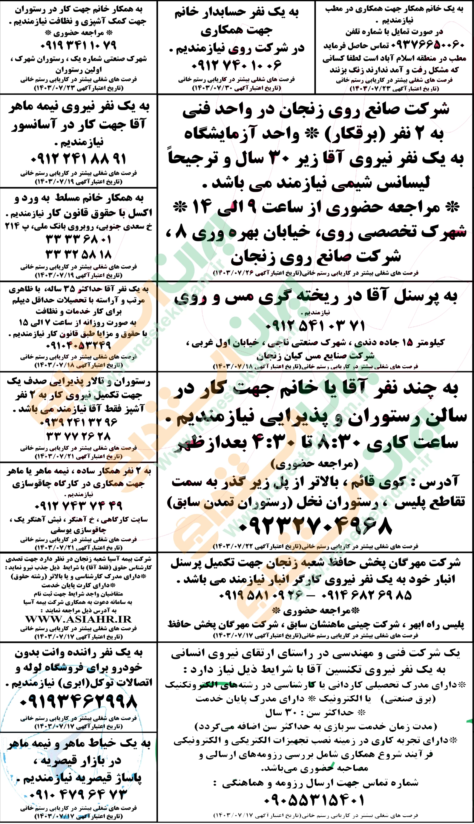روزنامه استخدامی استان زنجان | سه شنبه ۱۷ مهر ۱۴۰۳