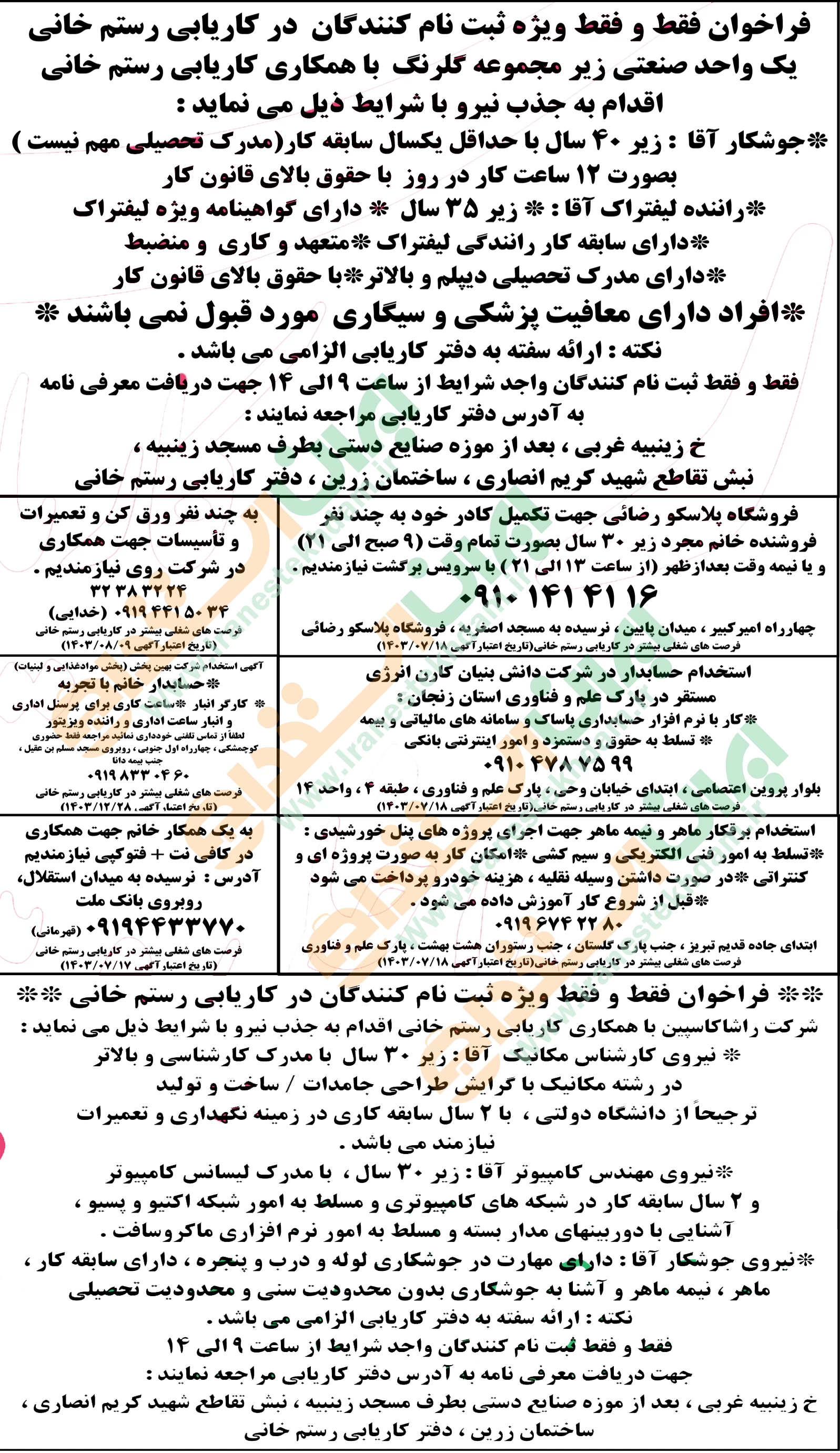 همچنین برای مشاهده صفحه نیازمندی های استخدامی استان زنجان اینجا کلیک نمایید