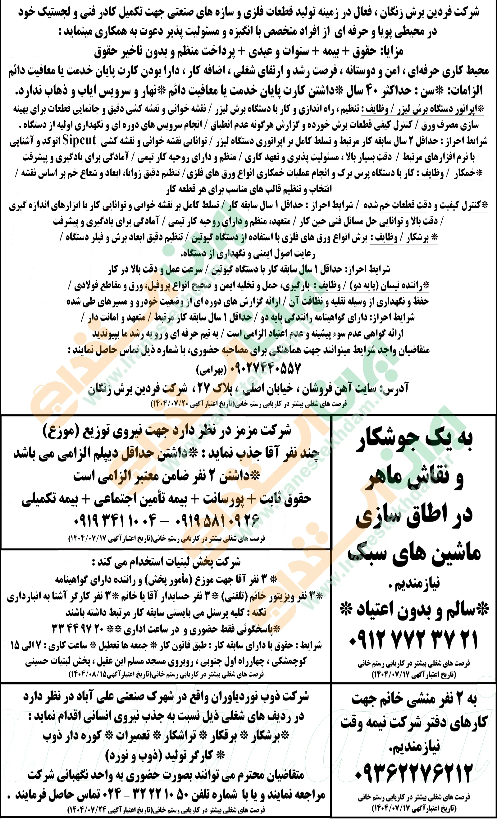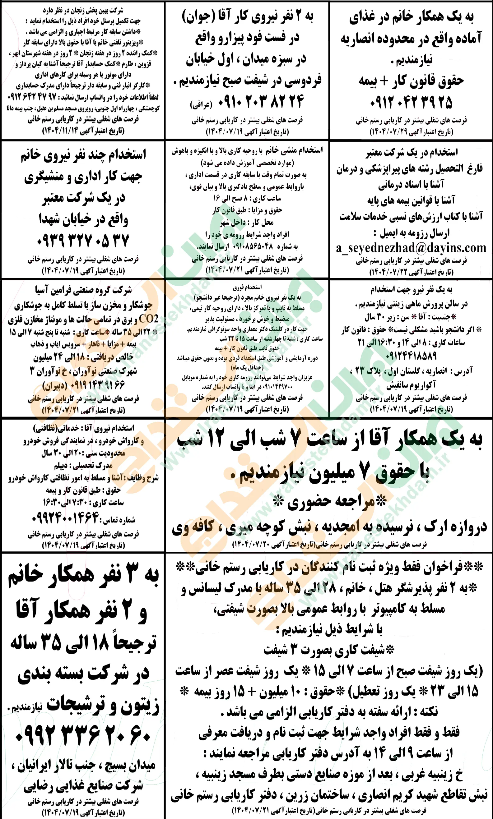 آگهی های استخدام استان زنجان