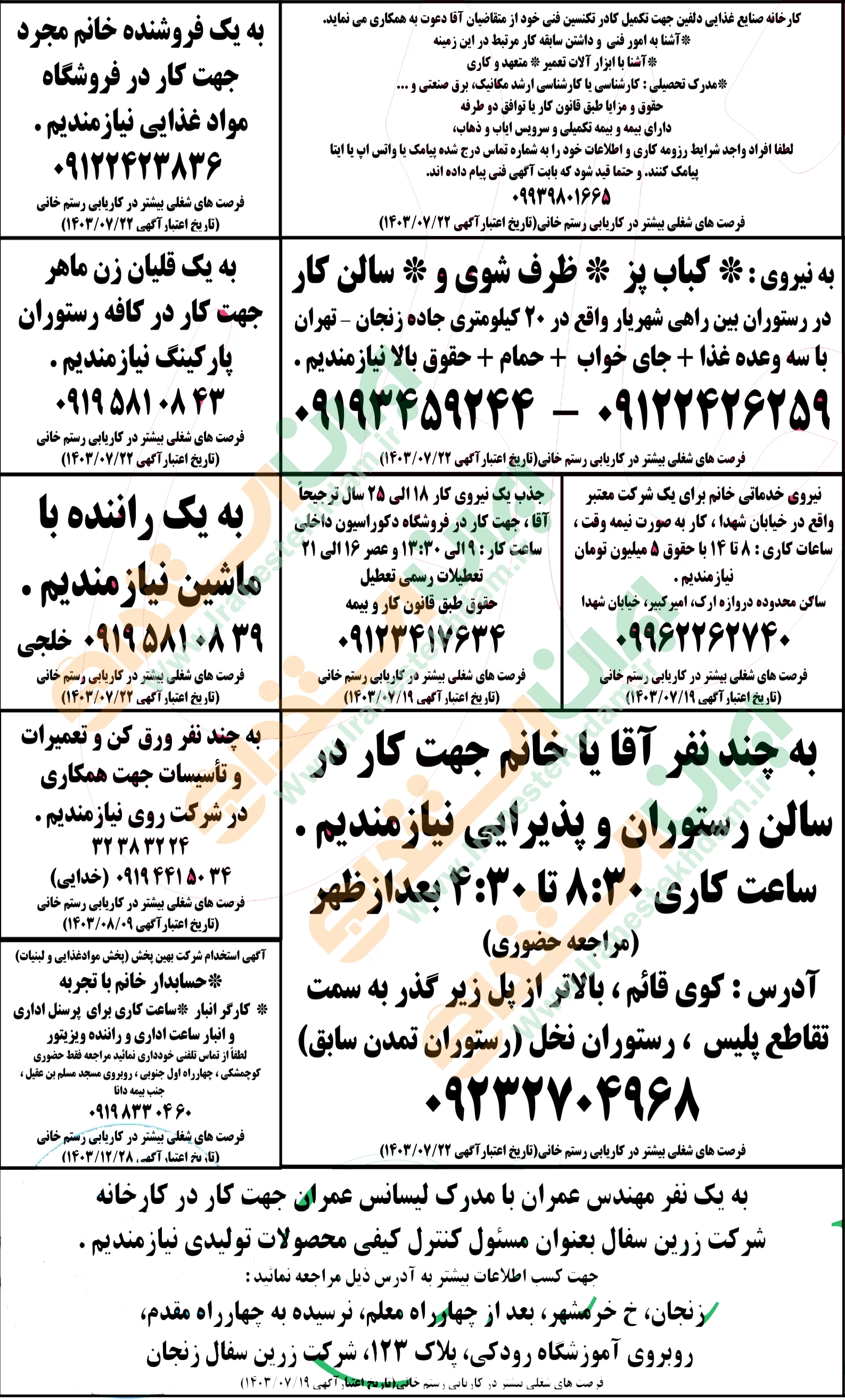 آگهی های استخدام استان زنجان