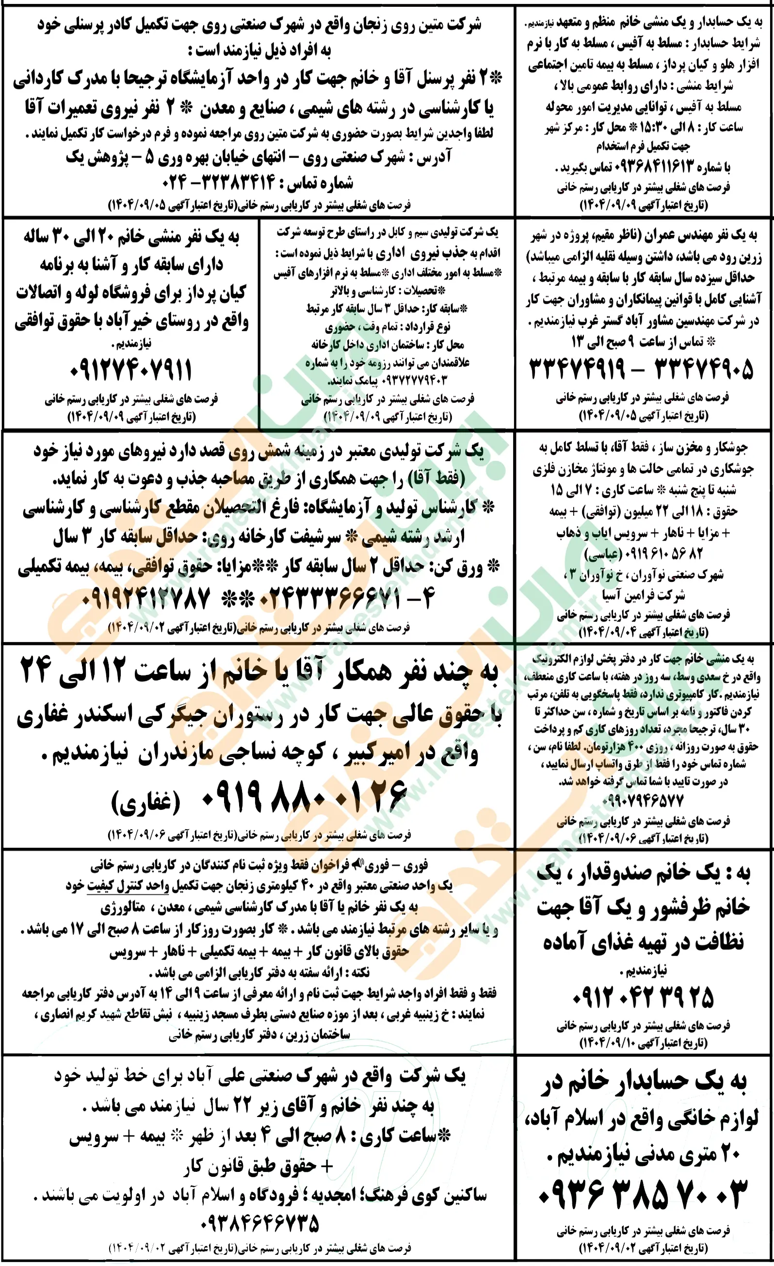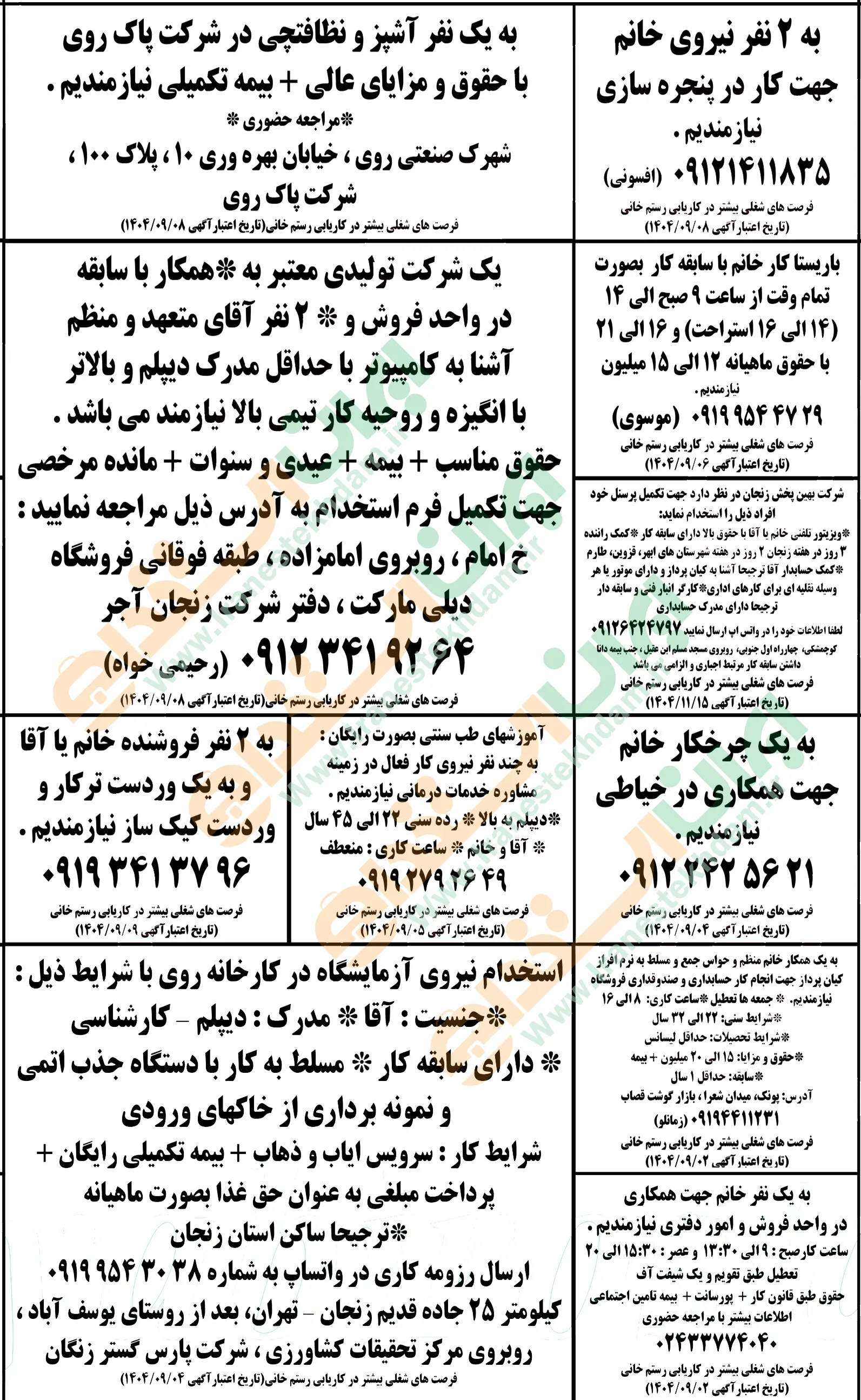 روزنامه استخدامی استان زنجان | یکشنبه ۲ آذر ۱۴۰۴