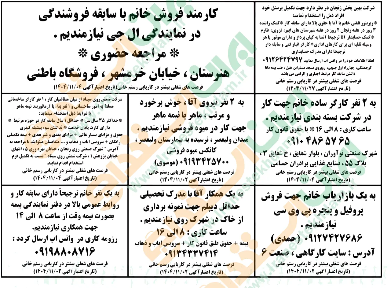 آگهی های استخدام استان زنجان