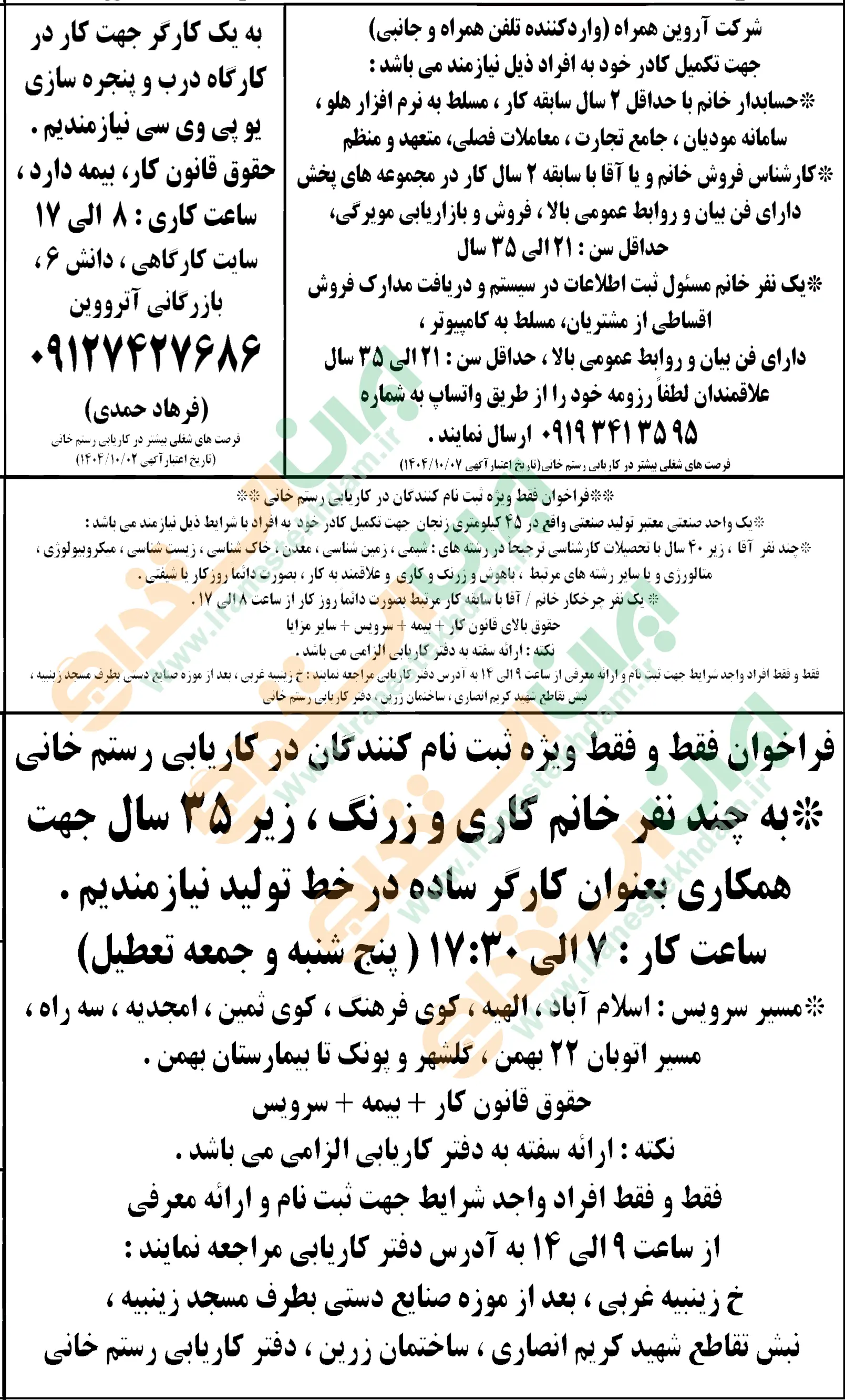 (نیازمندی های استخدامی)