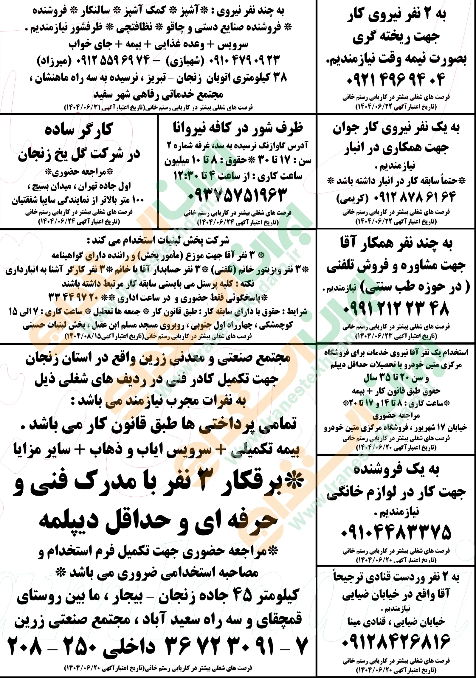 آگهی های استخدام استان زنجان