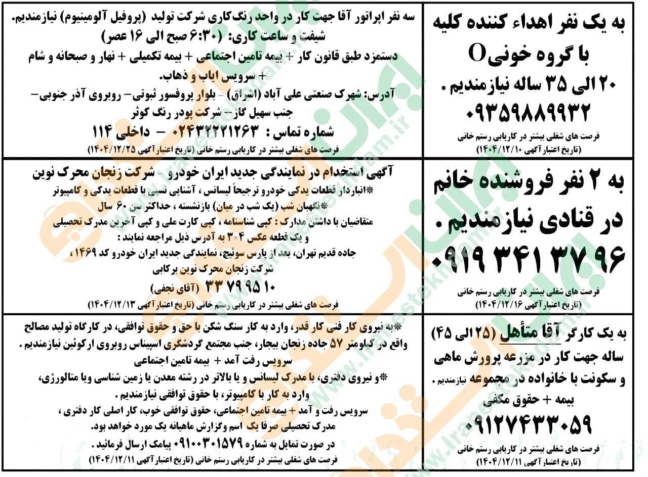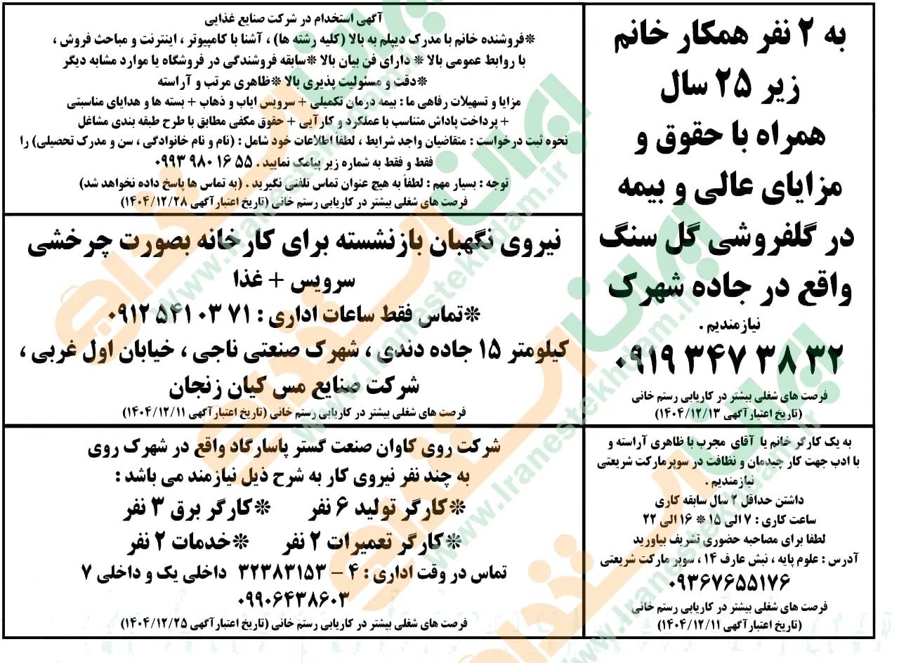 روزنامه استخدامی استان زنجان | پنجشنبه ۲۱ اسفند ۱۴۰۴