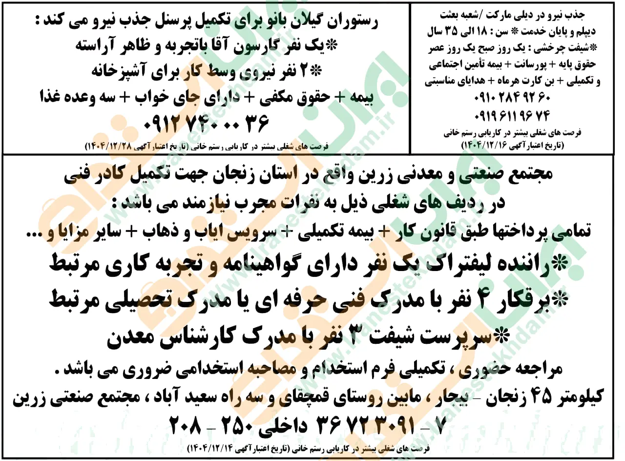 روزنامه استخدامی استان زنجان | پنجشنبه 21 اسفند 1404
