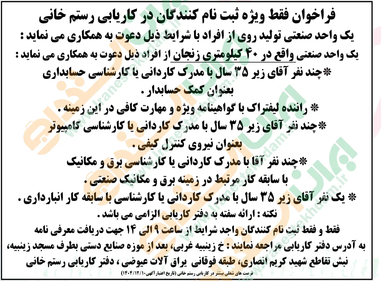 آگهی های استخدام استان زنجان