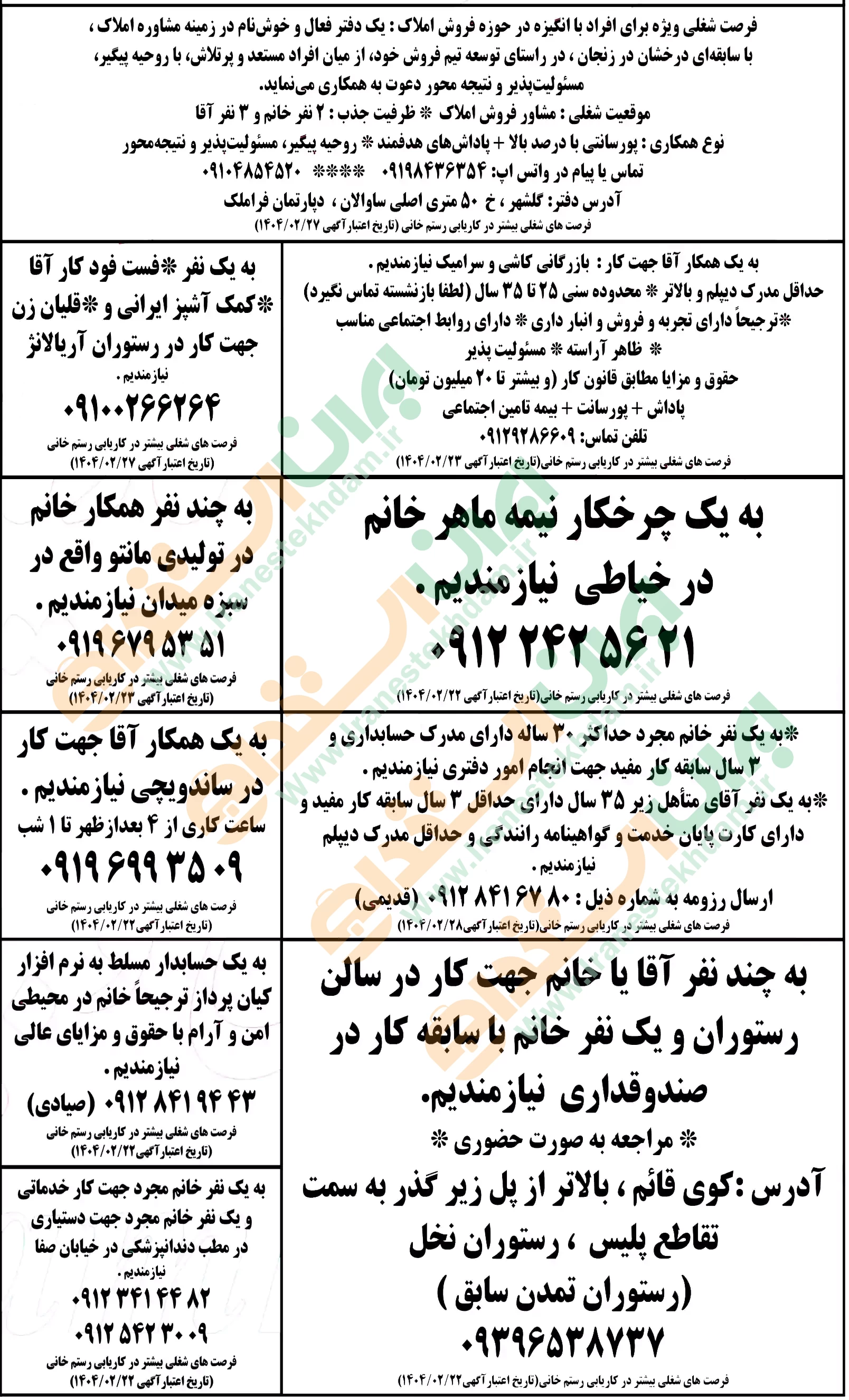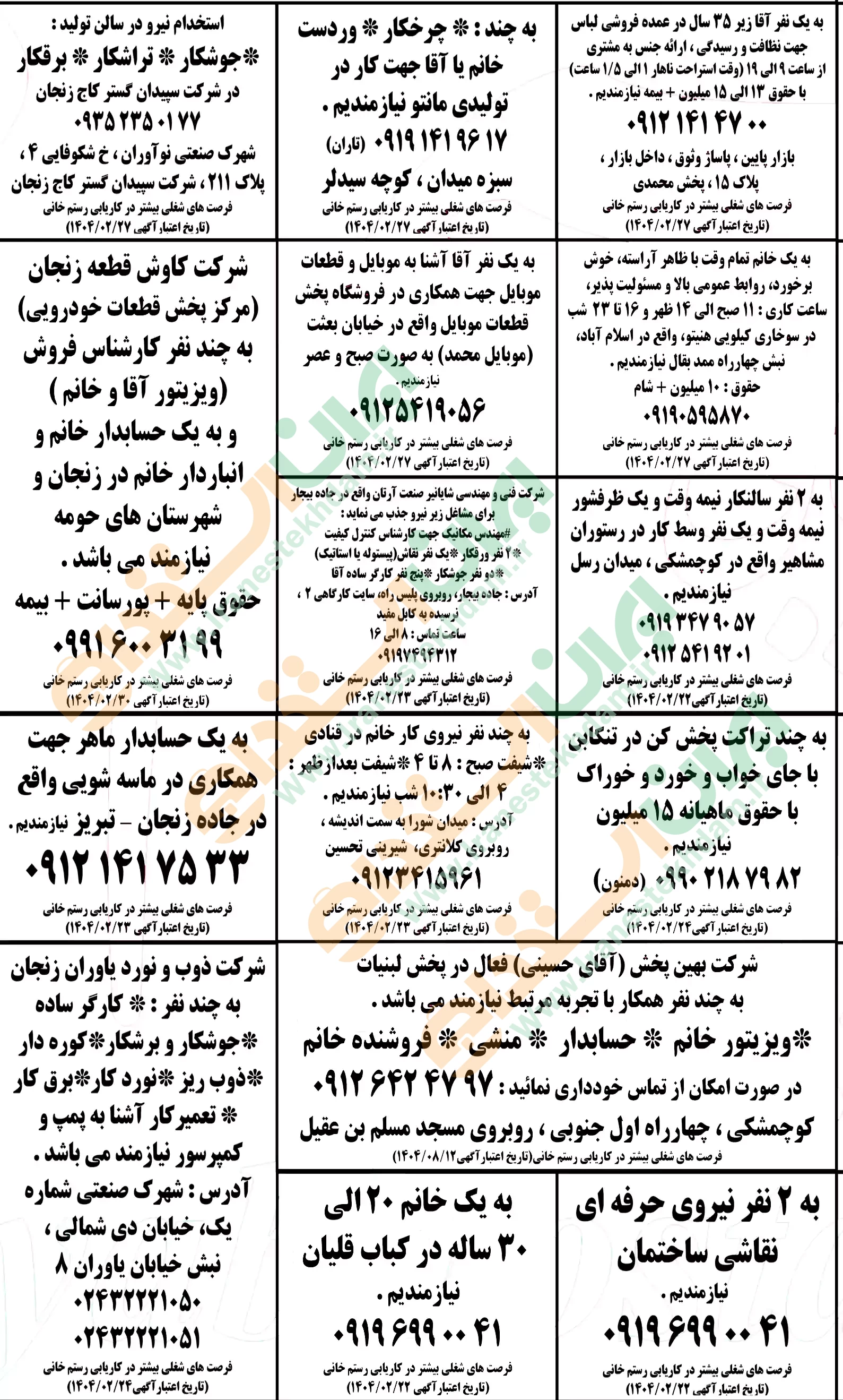 روزنامه استخدامی استان زنجان | دوشنبه 22 اردیبهشت 1404