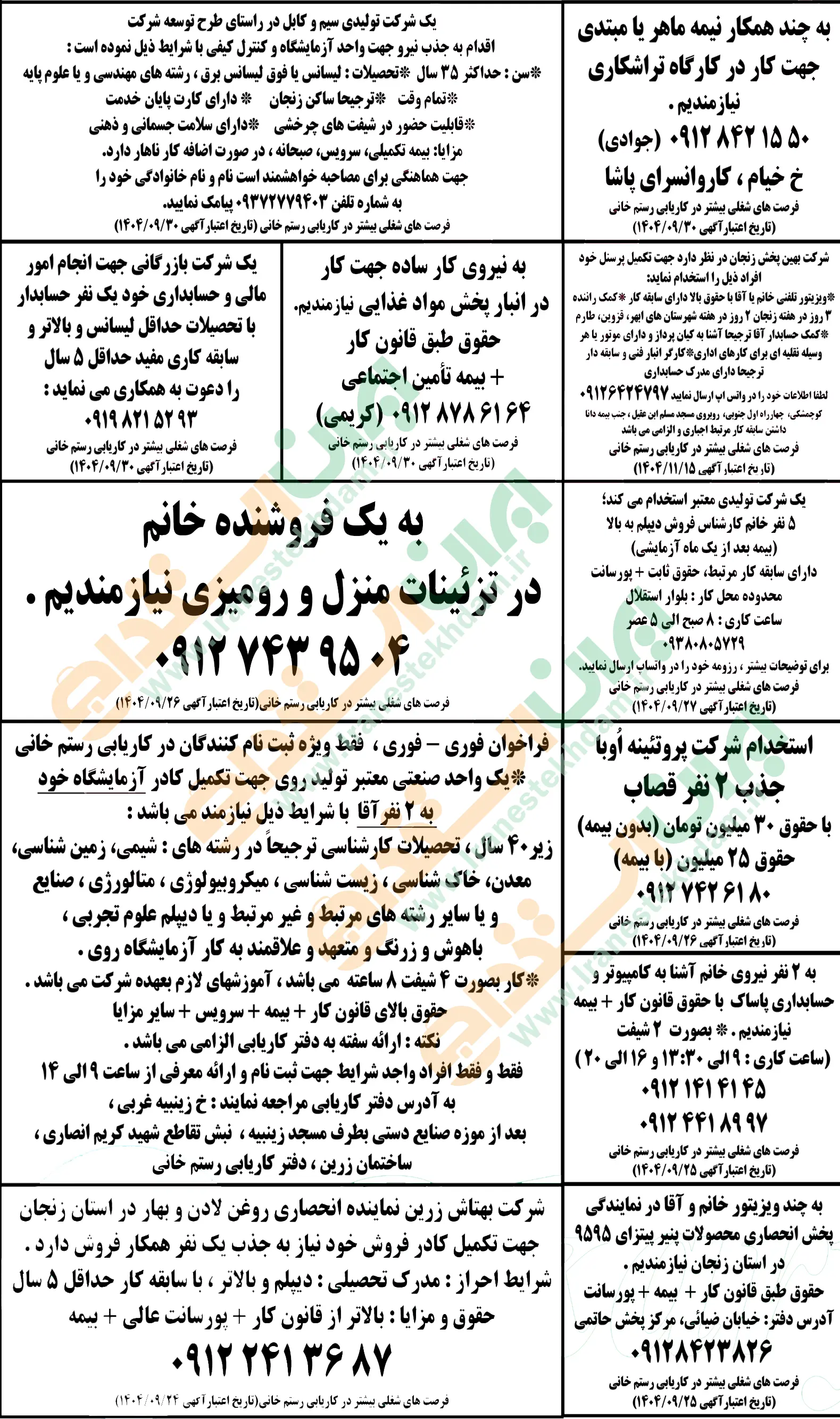 روزنامه استخدامی استان زنجان | دوشنبه ۲۴ آذر ۱۴۰۴