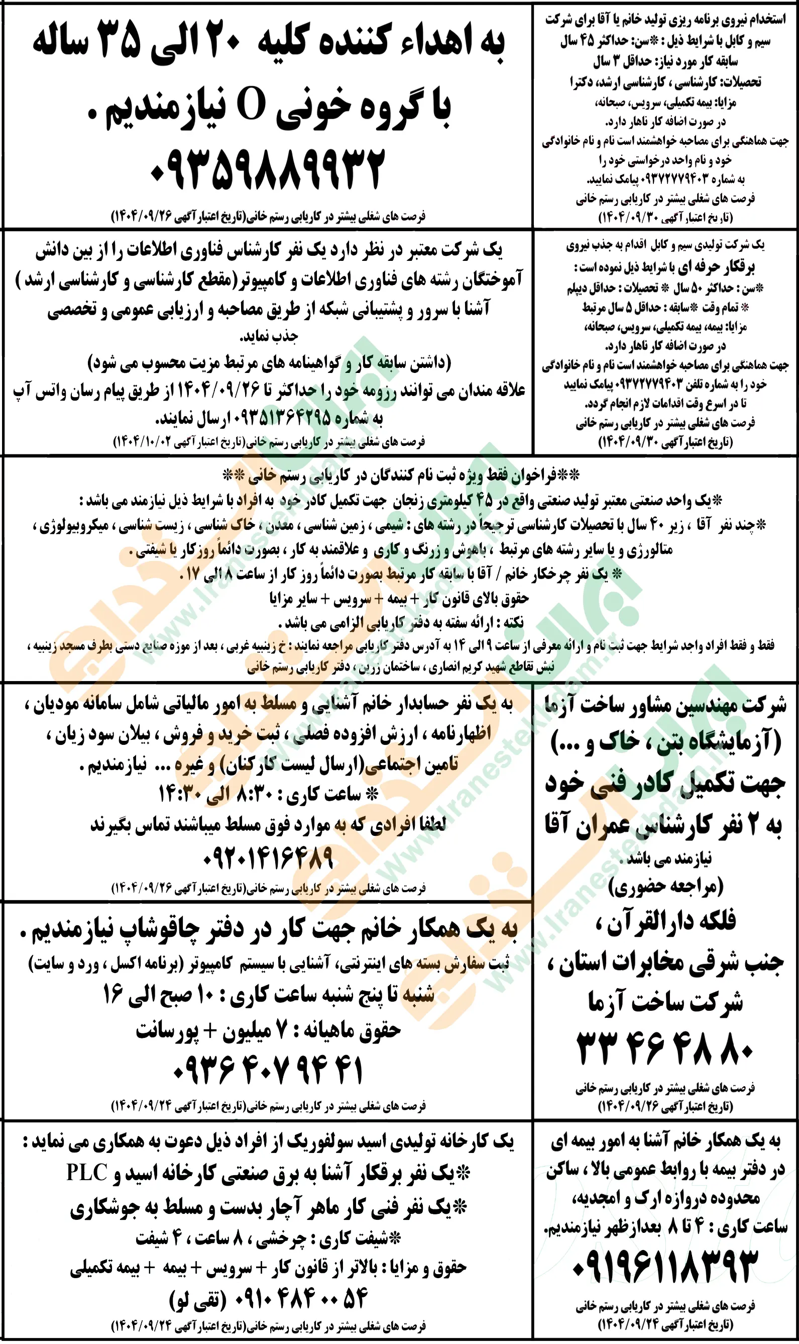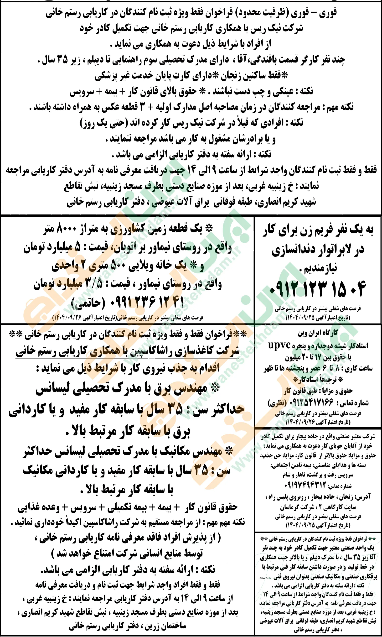 روزنامه استخدامی استان زنجان | دوشنبه 24 آذر 1404