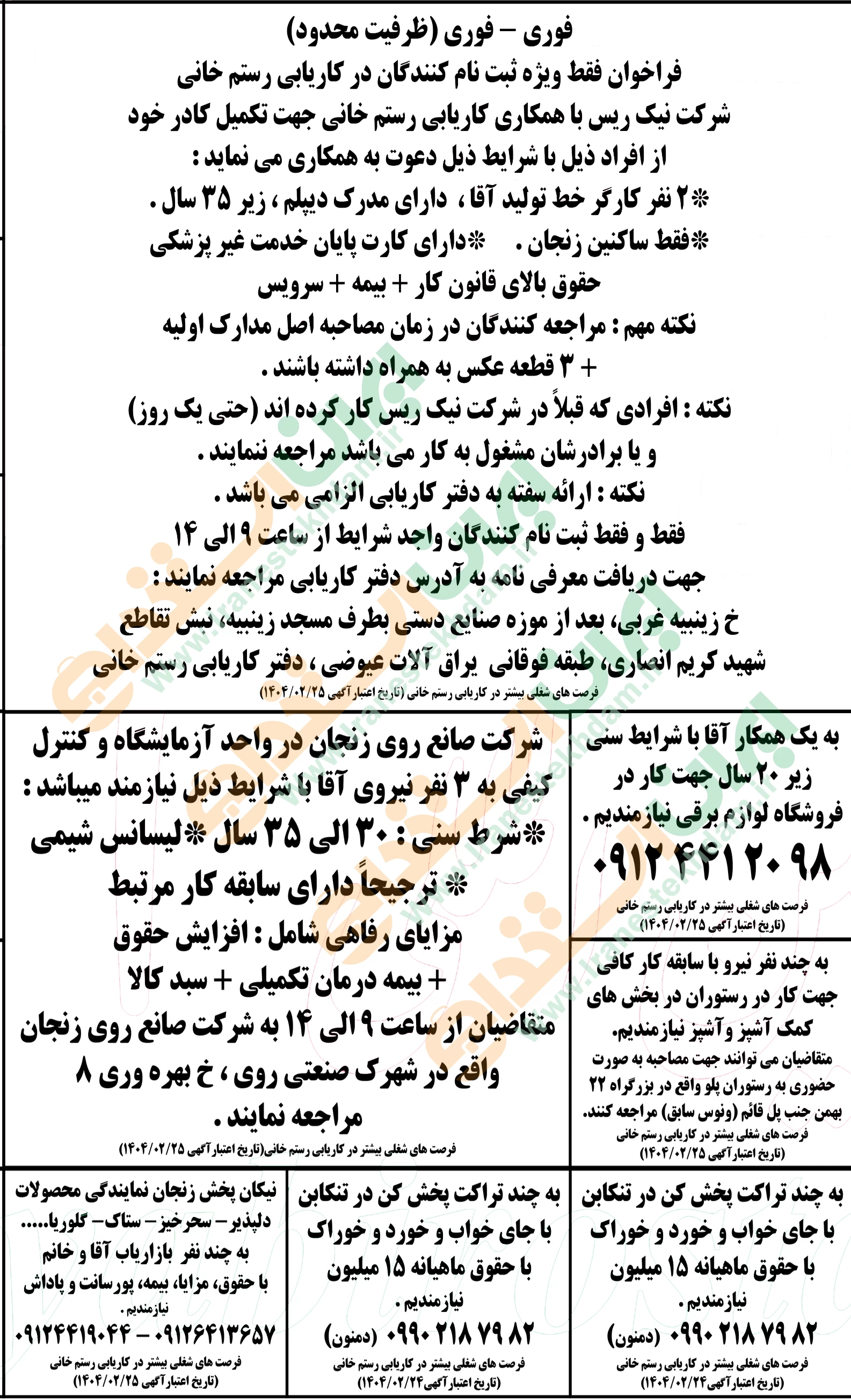 روزنامه استخدامی استان زنجان | چهارشنبه ۲۴ اردیبهشت ۱۴۰۴