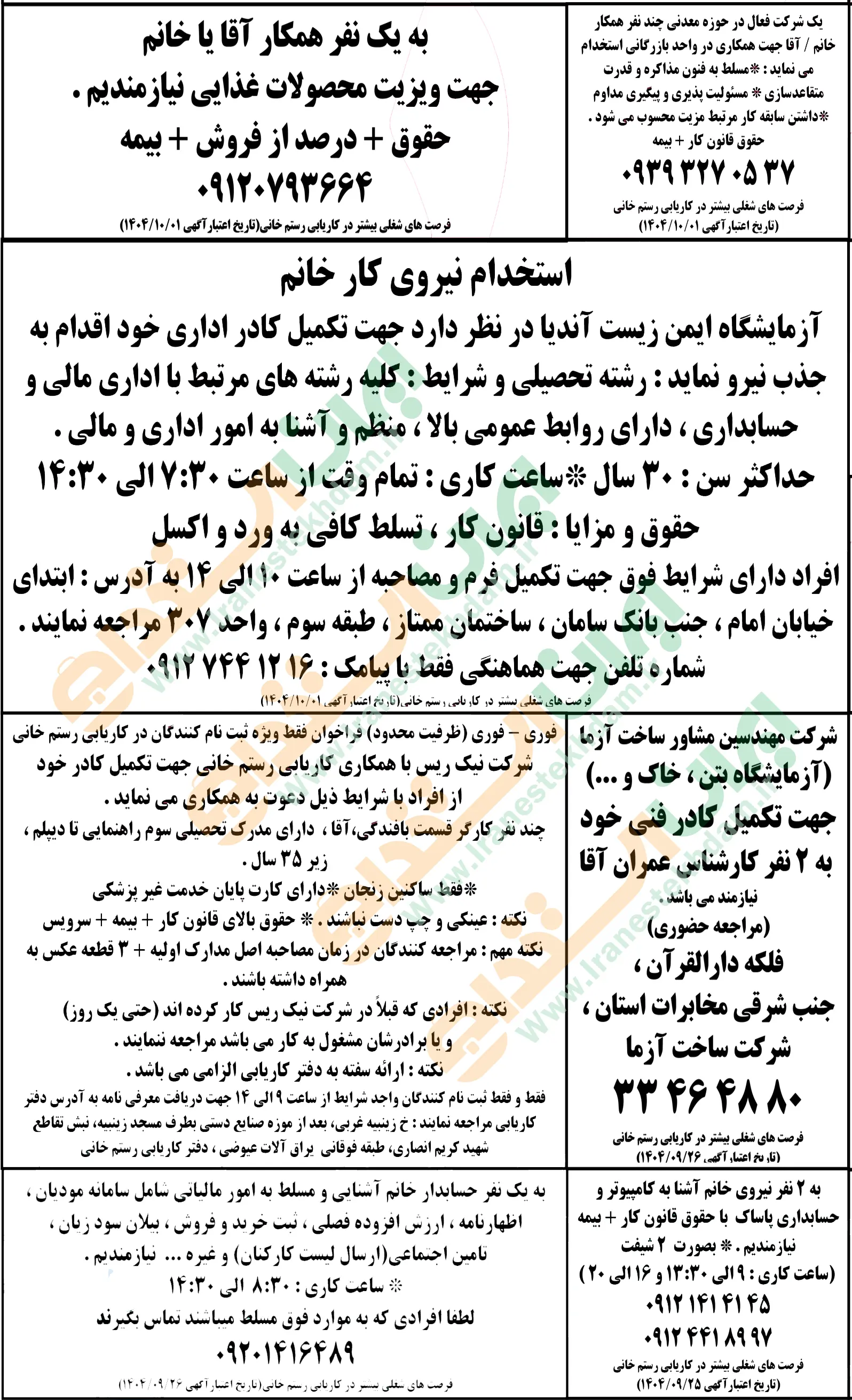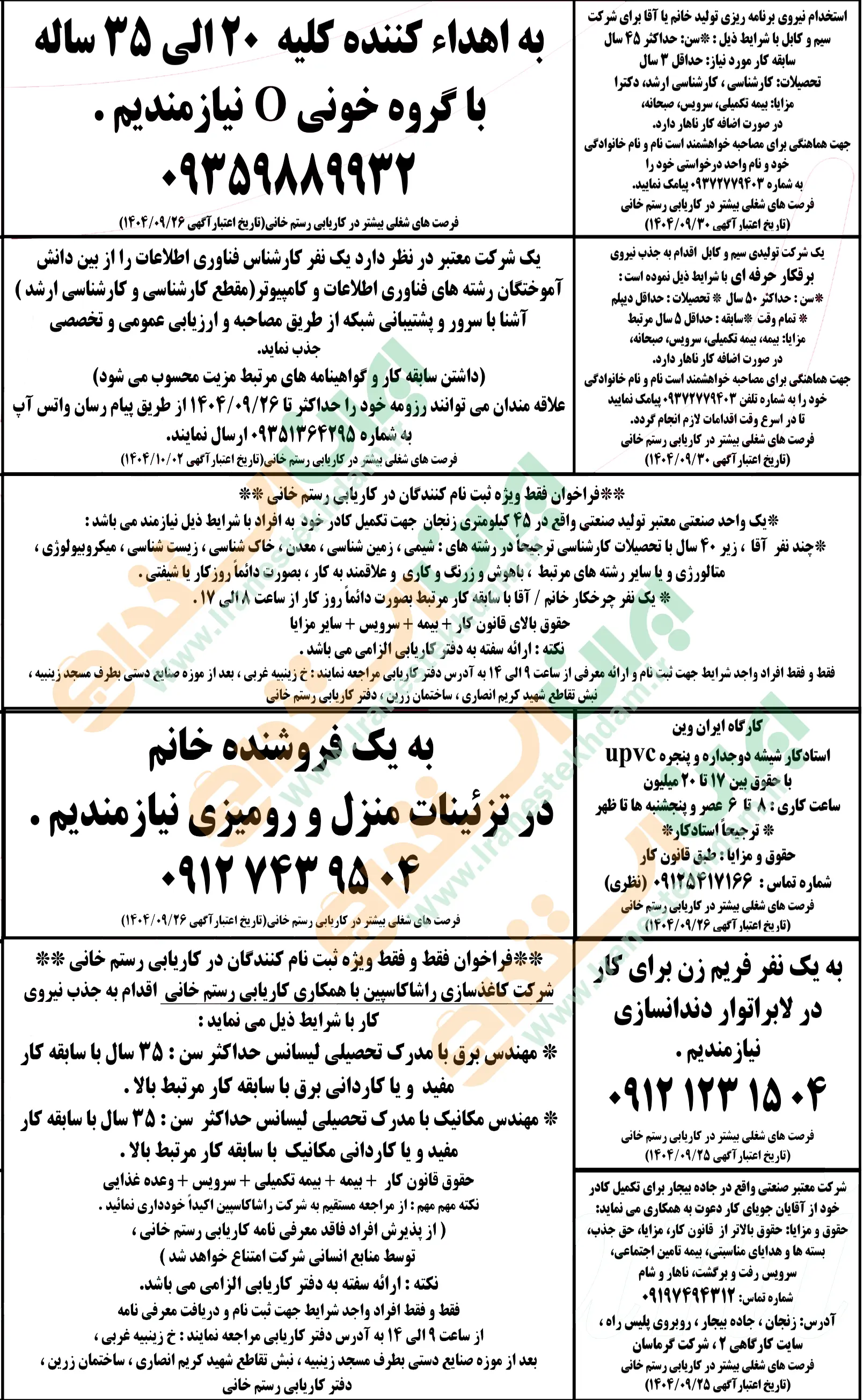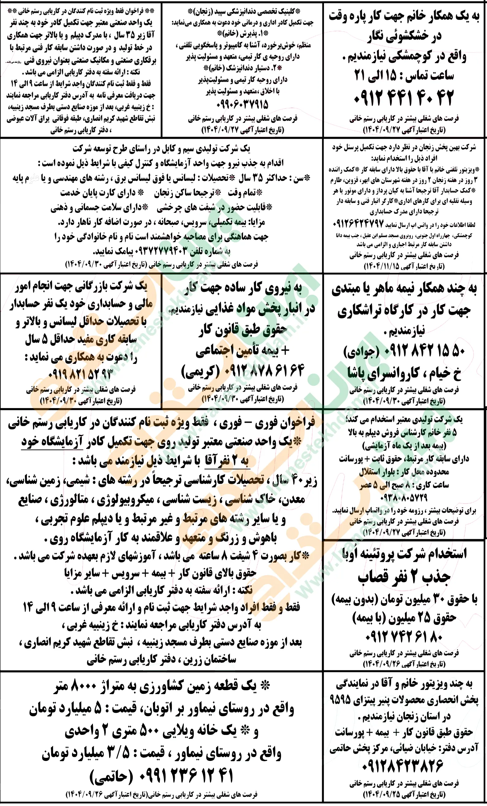 روزنامه استخدامی استان زنجان | سهشنبه ۲۵ آذر ۱۴۰۴