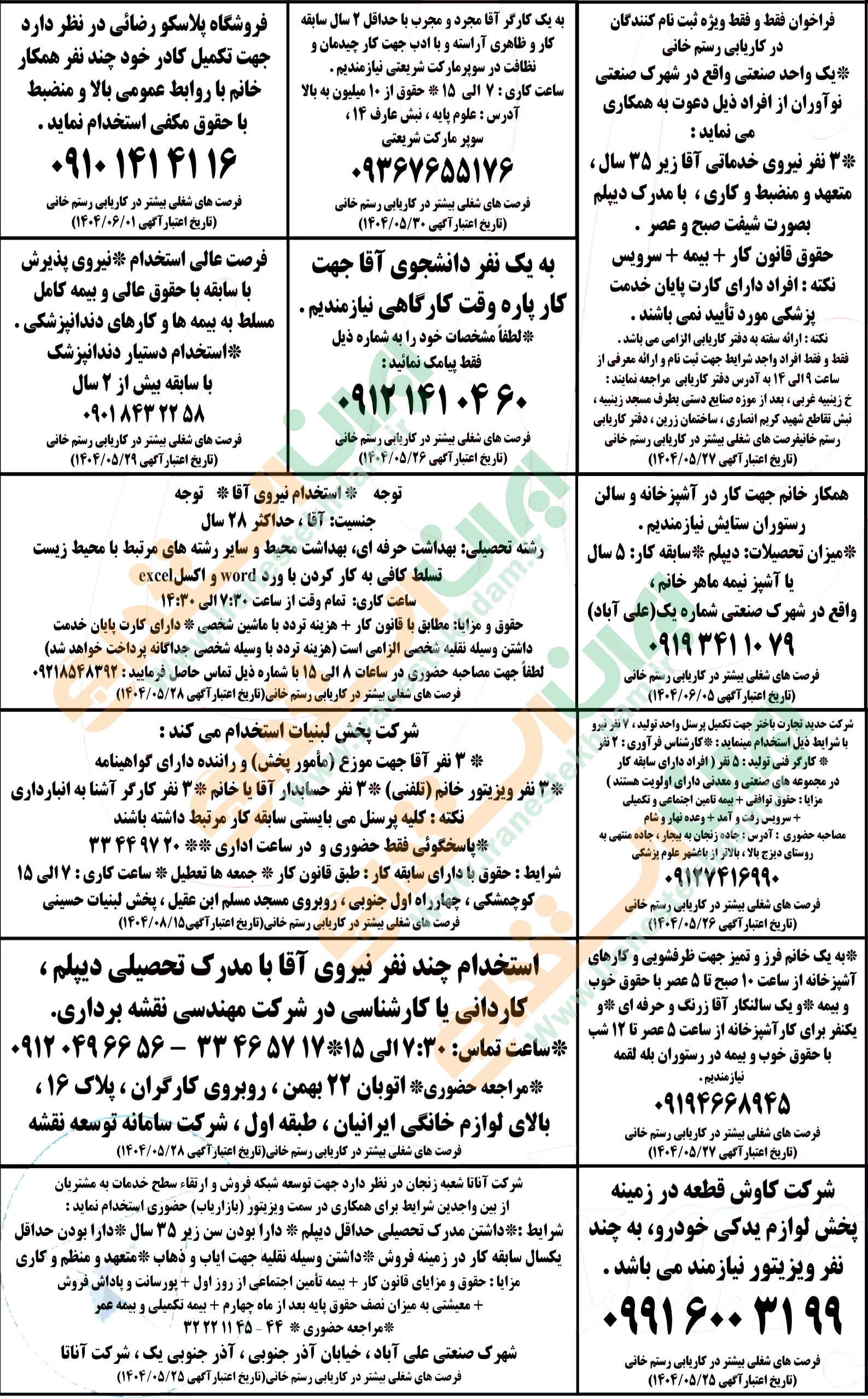 روزنامه استخدامی استان زنجان | شنبه 25 مرداد 1404