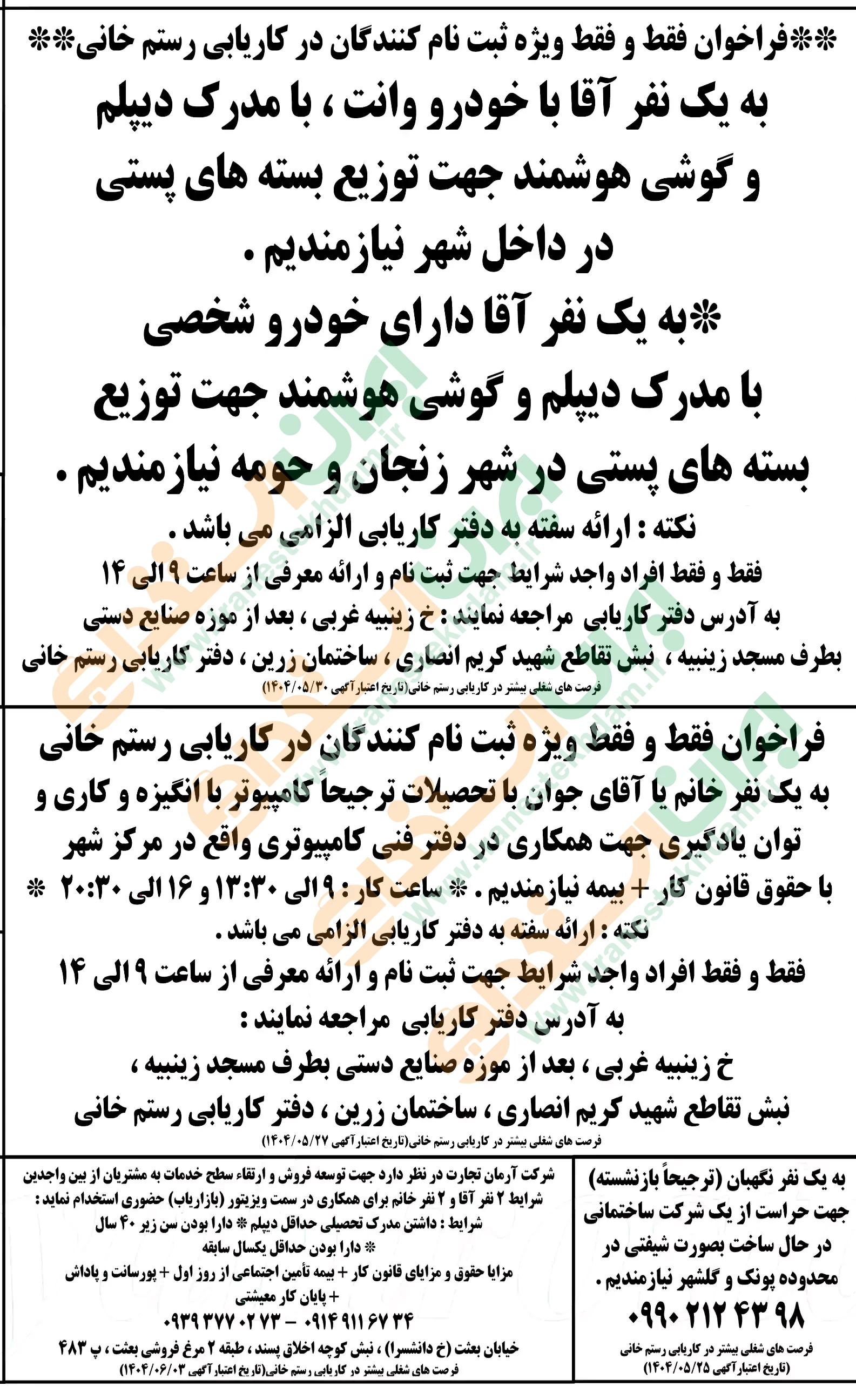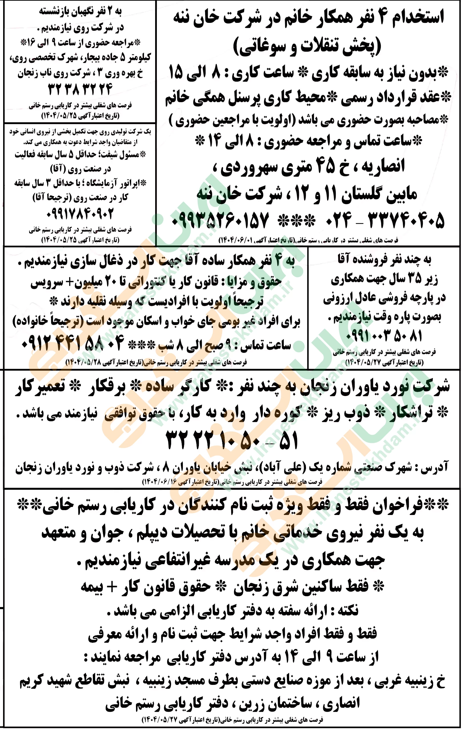 روزنامه استخدامی استان زنجان | شنبه ۲۵ مرداد ۱۴۰۴