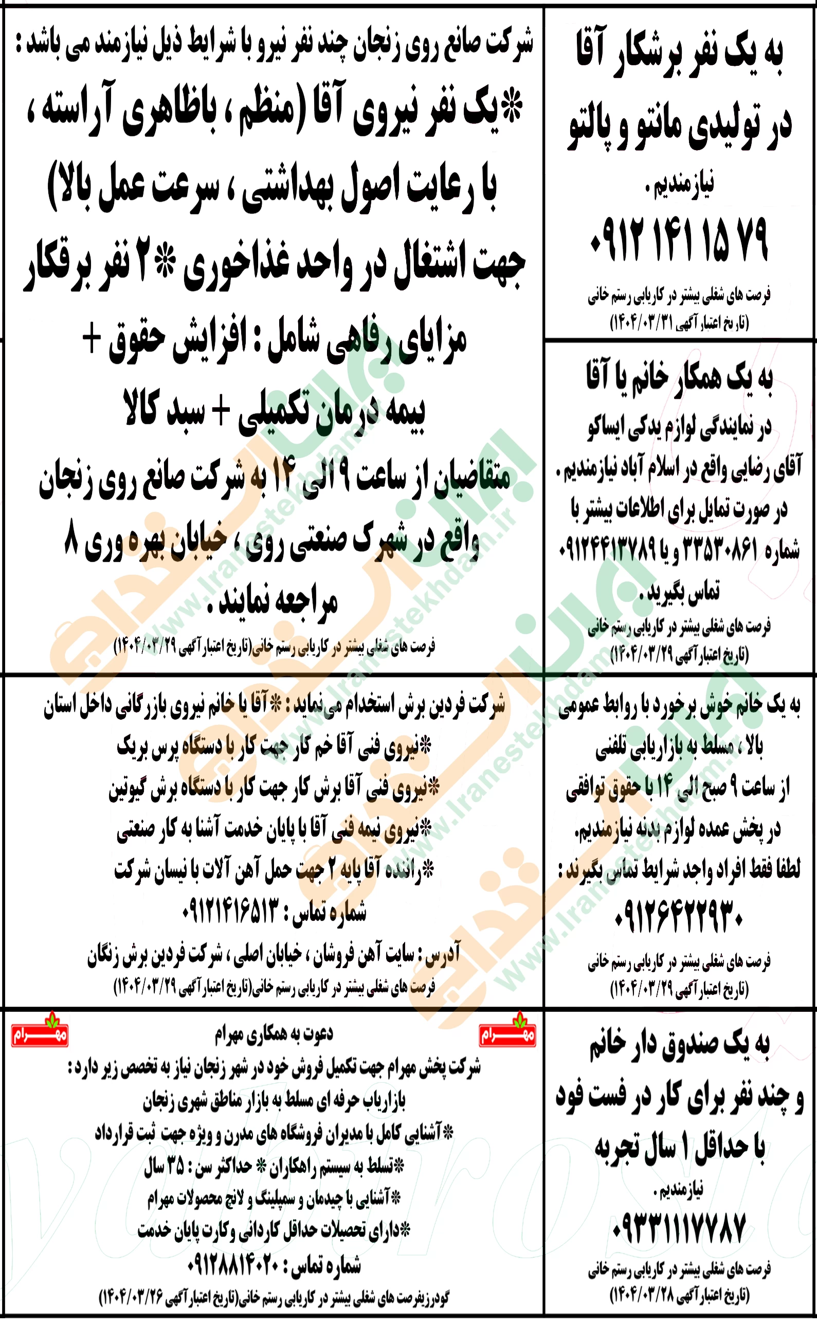 آگهی های استخدام استان زنجان