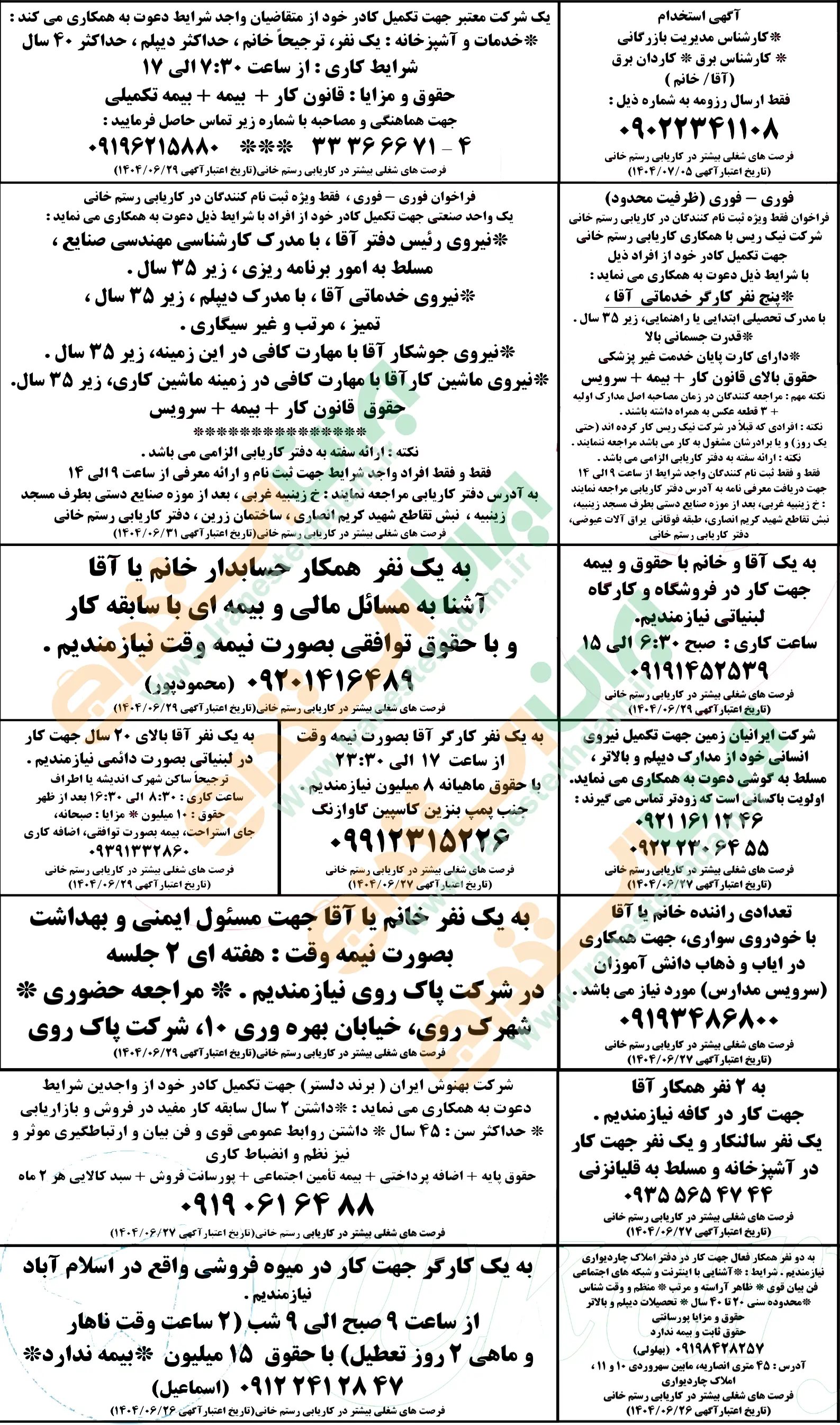 (نیازمندی های استخدامی)