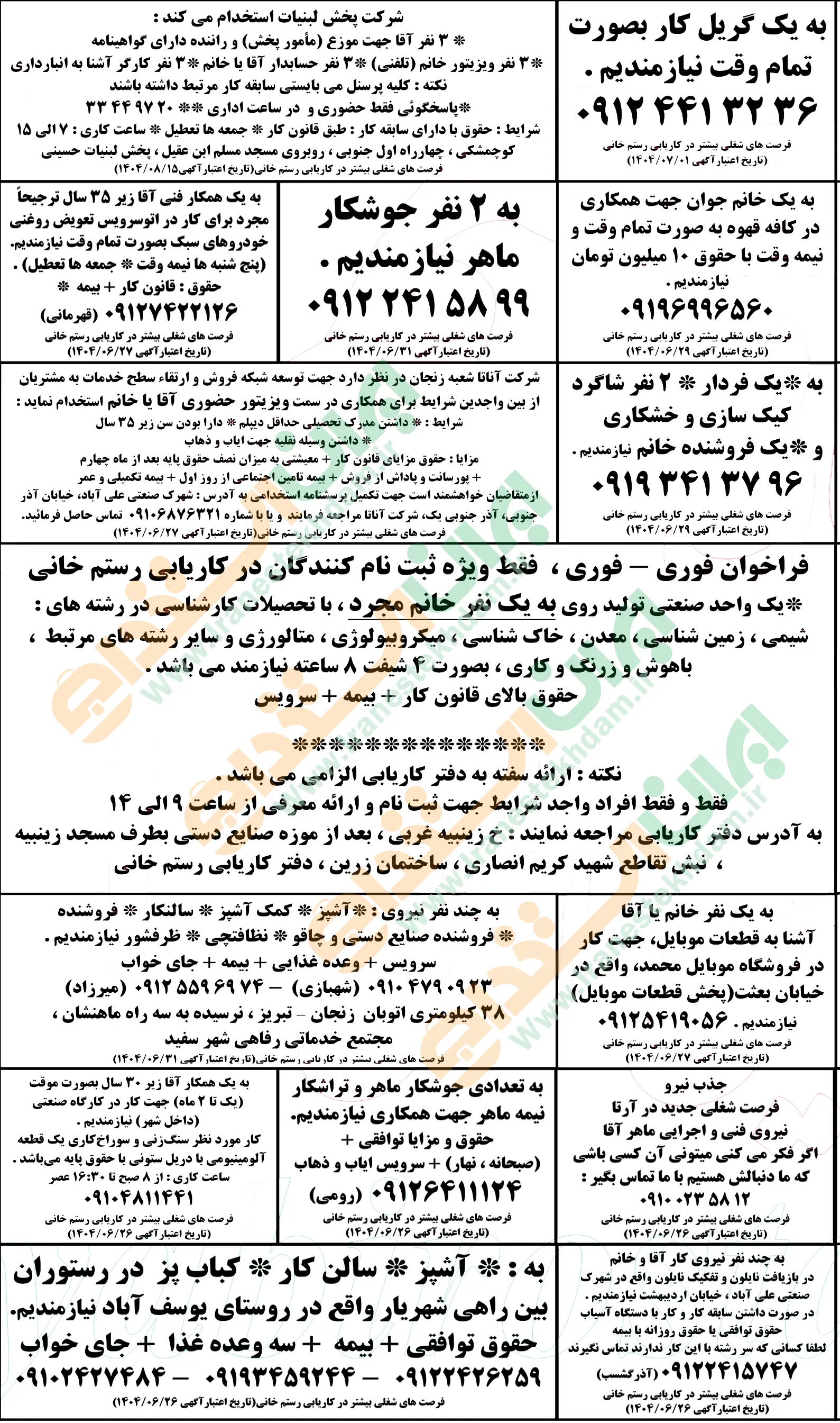 روزنامه استخدامی استان زنجان | چهارشنبه 26 شهریور 1404