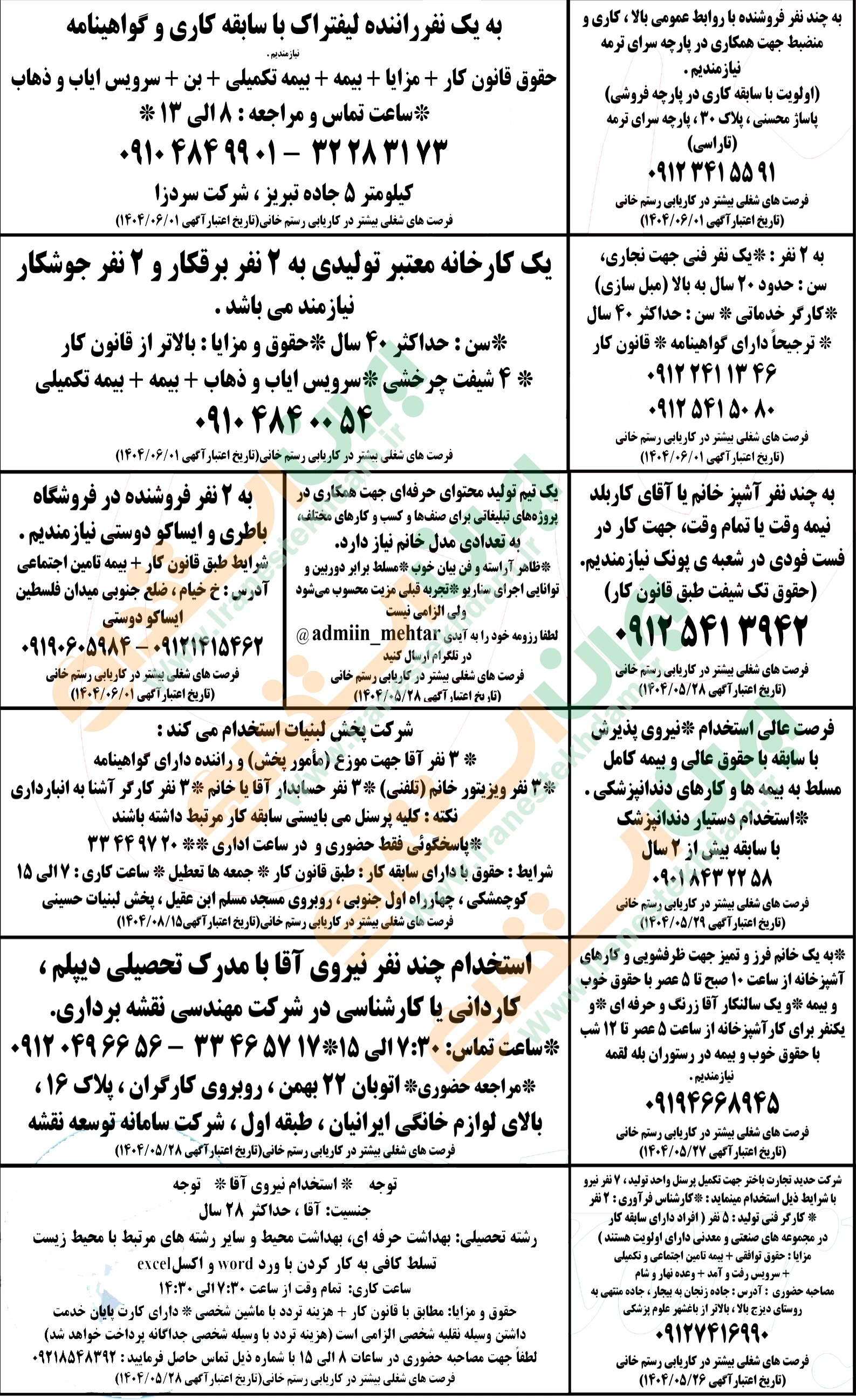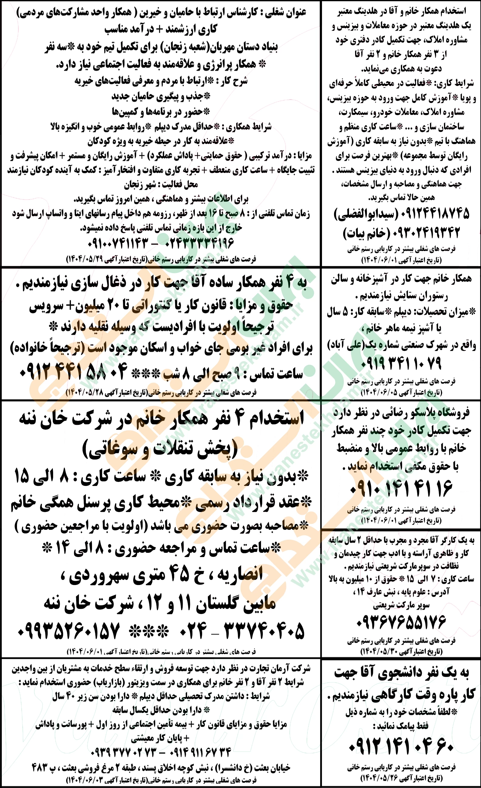 روزنامه استخدامی استان زنجان | یکشنبه ۲۶ مرداد ۱۴۰۴