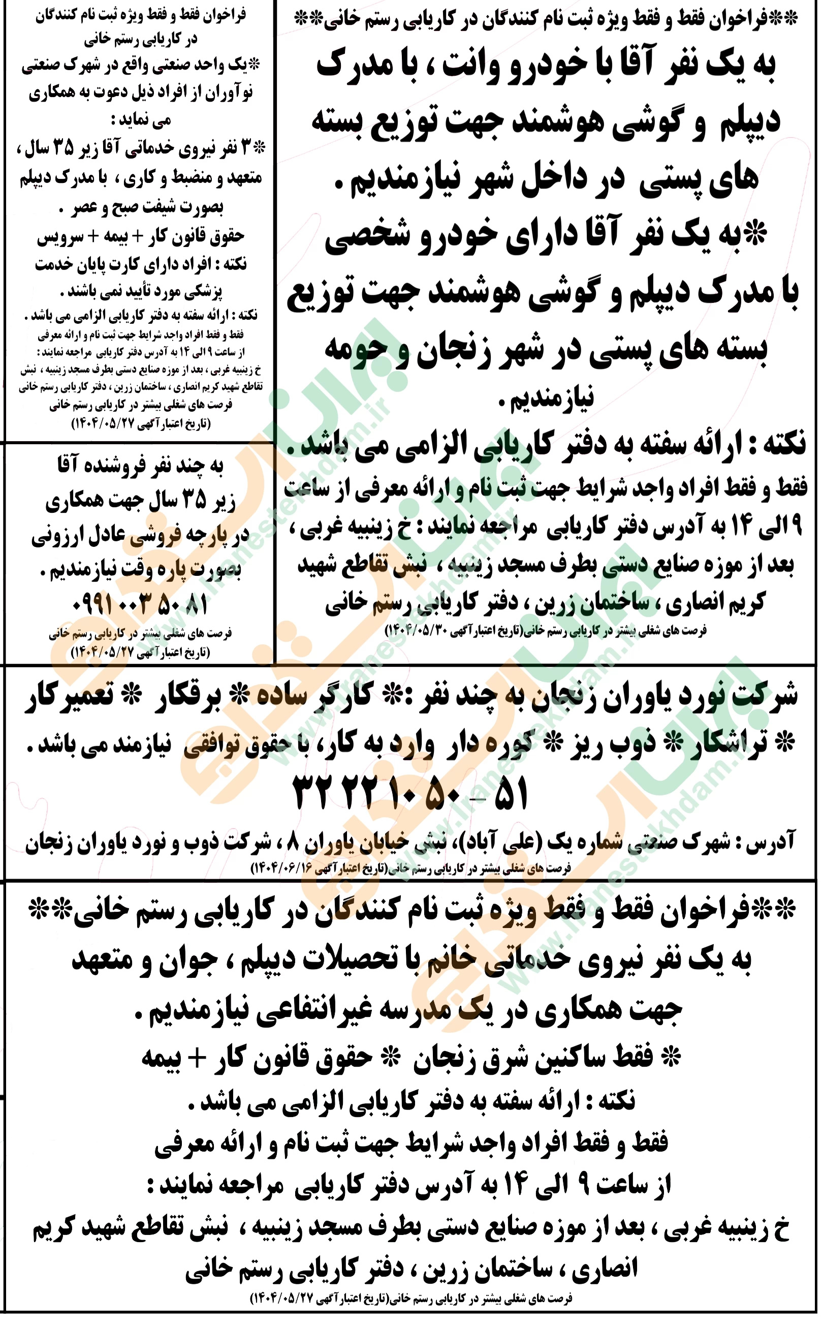 آگهی های استخدام استان زنجان