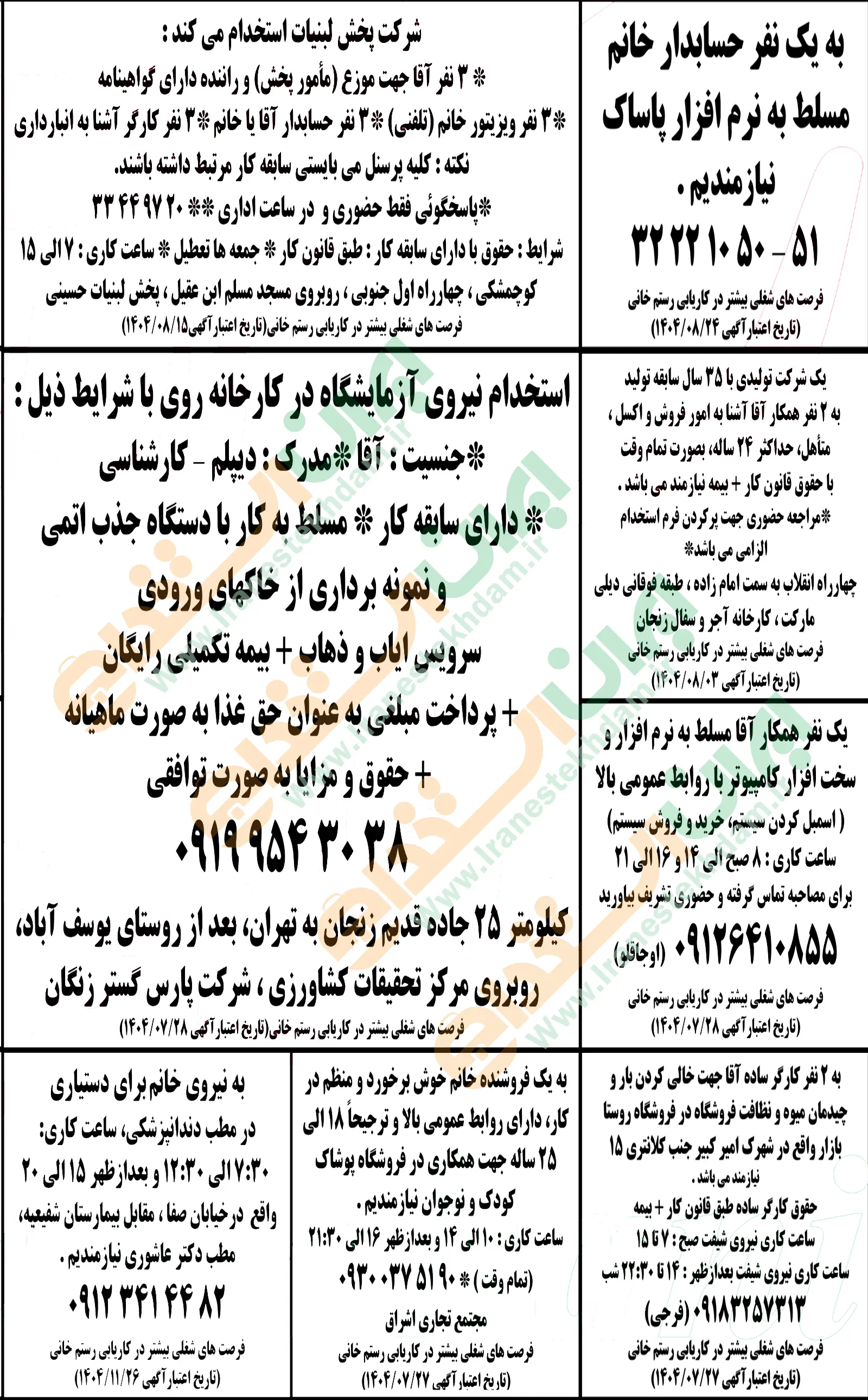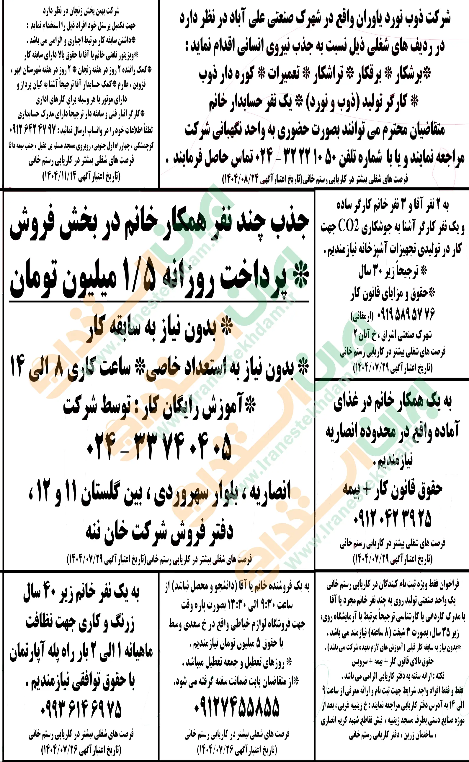 روزنامه استخدامی استان زنجان | شنبه ۲۶ مهر ۱۴۰۴