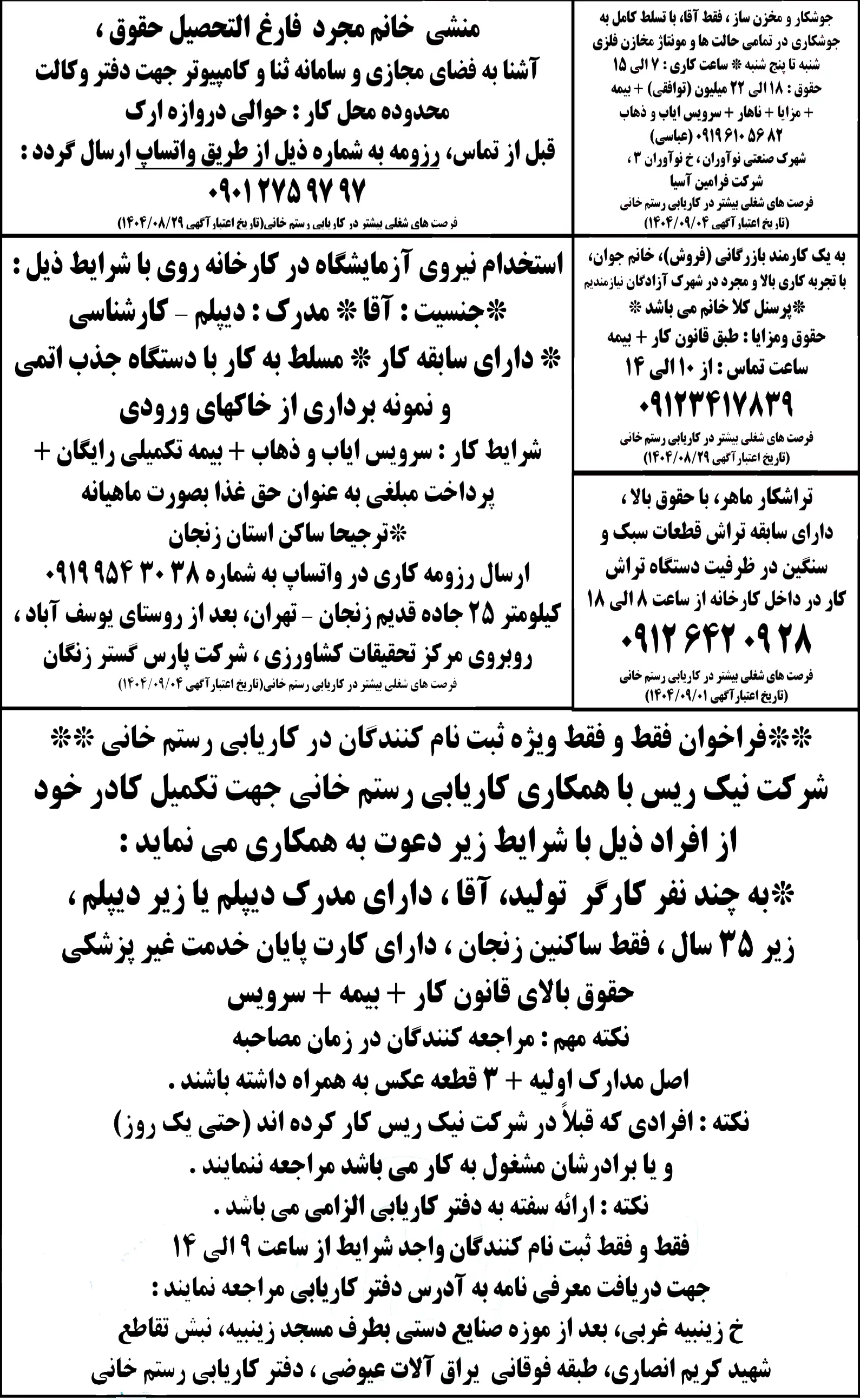 روزنامه استخدامی استان زنجان | سه شنبه 27 آبان 1404