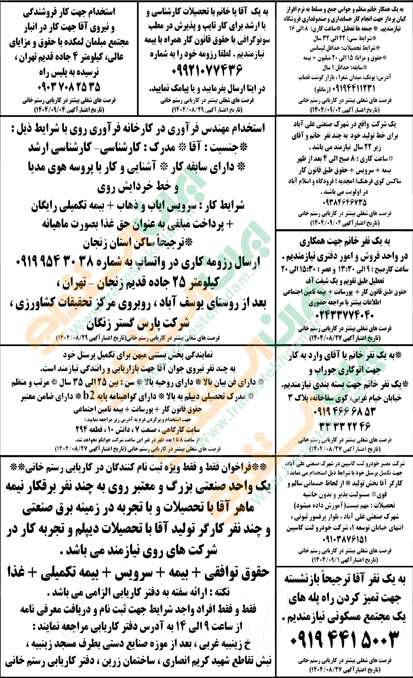 آگهی های استخدام استان زنجان