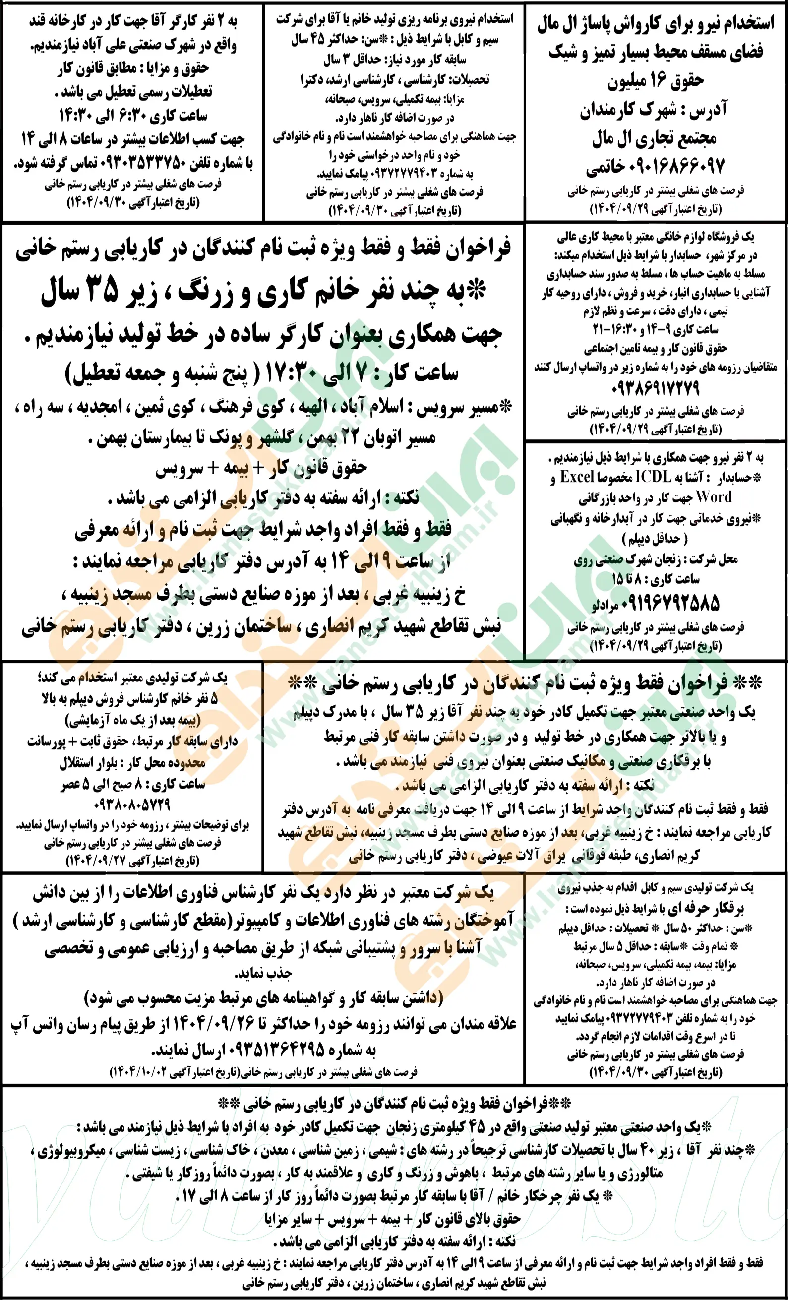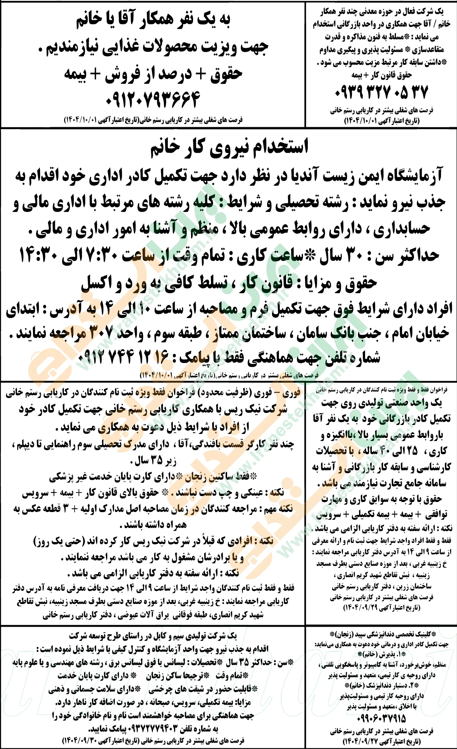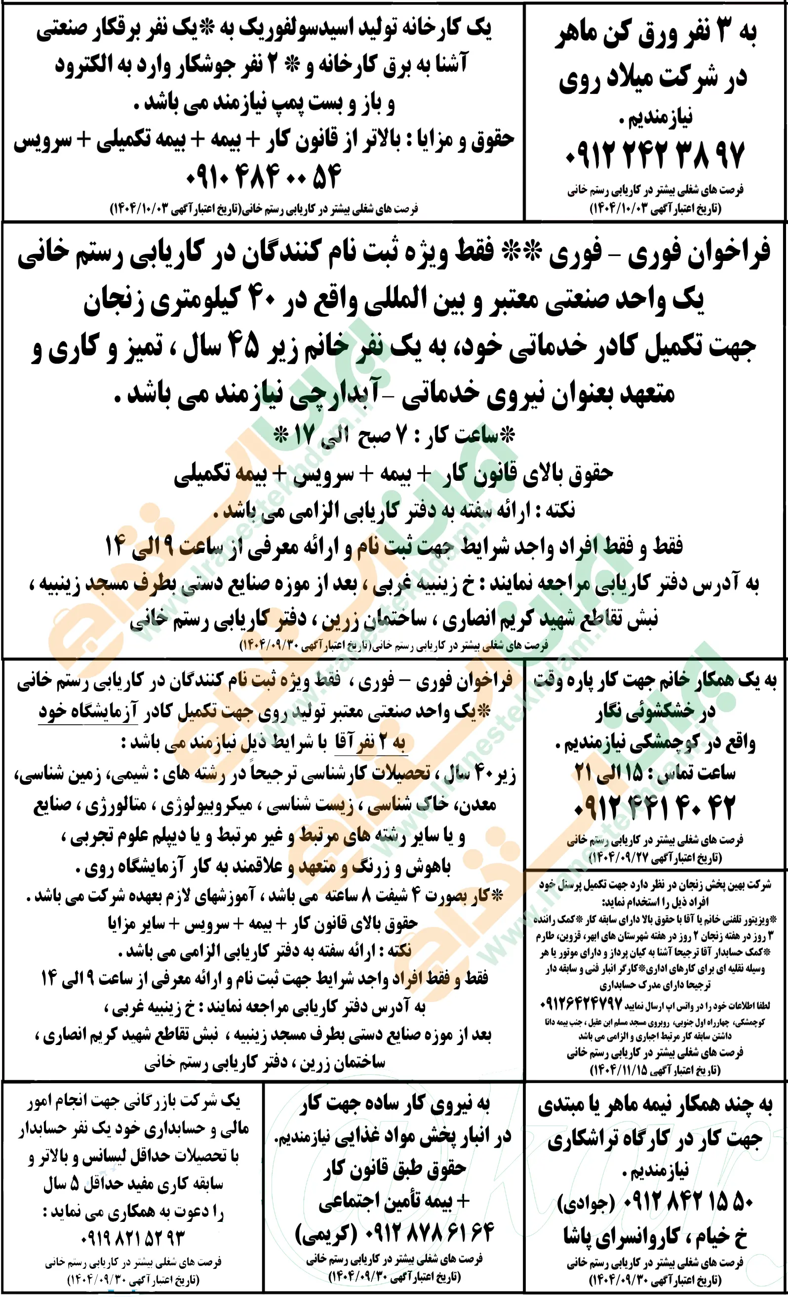 روزنامه استخدامی استان زنجان | پنجشنبه 27 آذر 1404